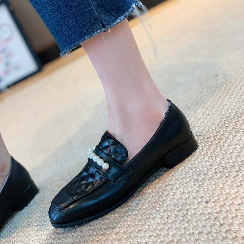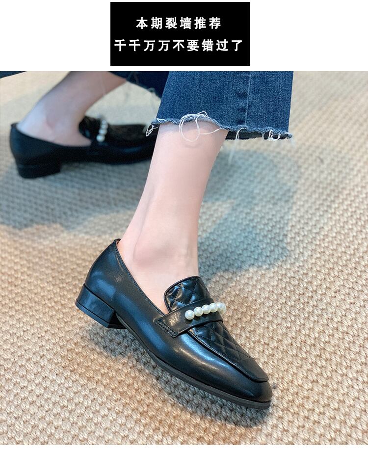 レザースタイルスプリングパールセット ブラック 靴 シューズ 春物 真珠 部族の婦人靴5184640535