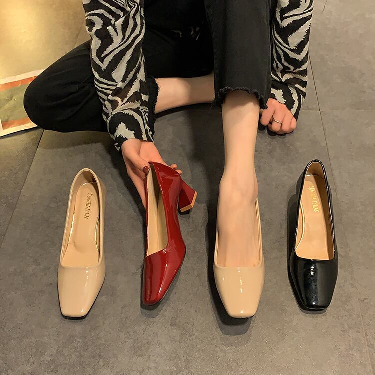 シングルスプリングレッドソリッド カラー 靴 シューズ 春物 ソリッドカラー スクウェア 部族の婦人靴11332393951