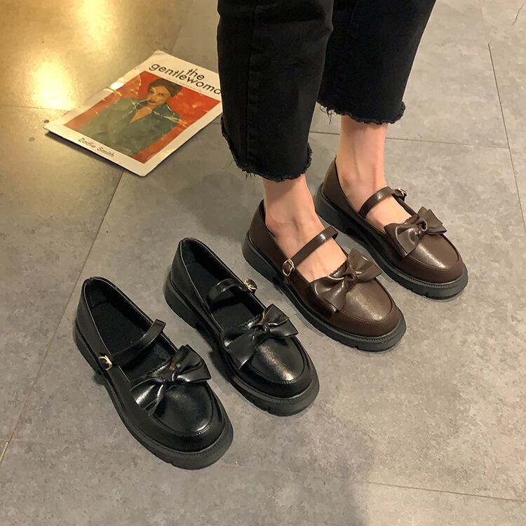 スタイルレザースプリングシングルリボン 靴 シューズ 春物 ラウンドトー 部族の婦人靴19997967783