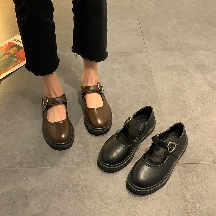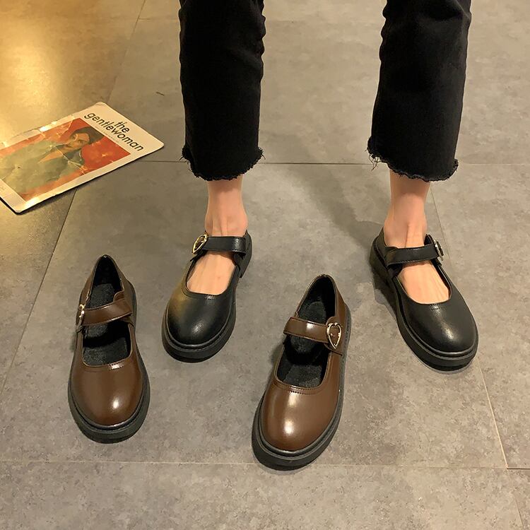 レザースタイルスプリングバックルシングル 靴 シューズ 春物 ラウンドトー 部族の婦人靴77263889306