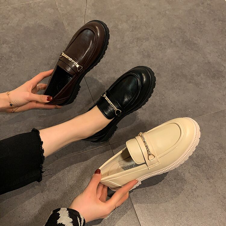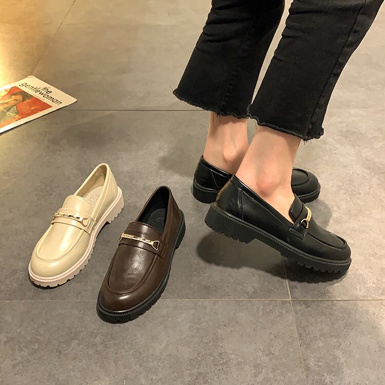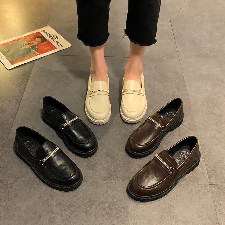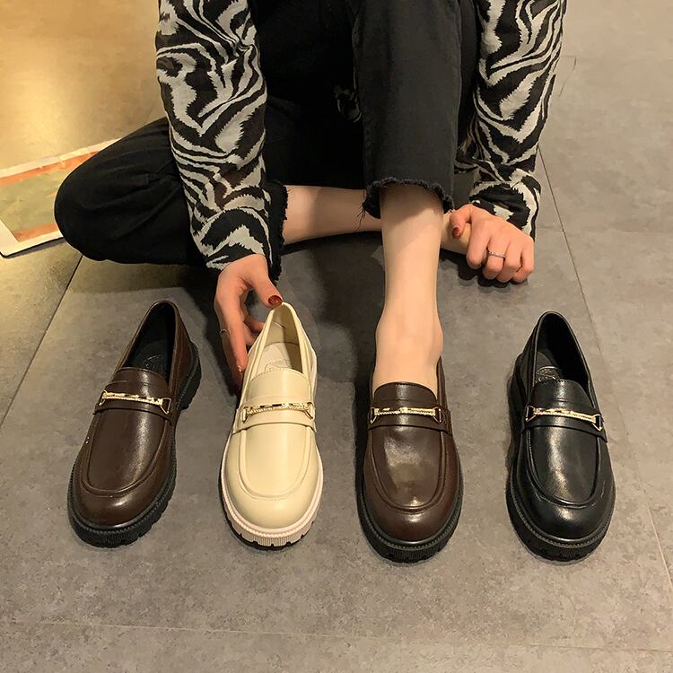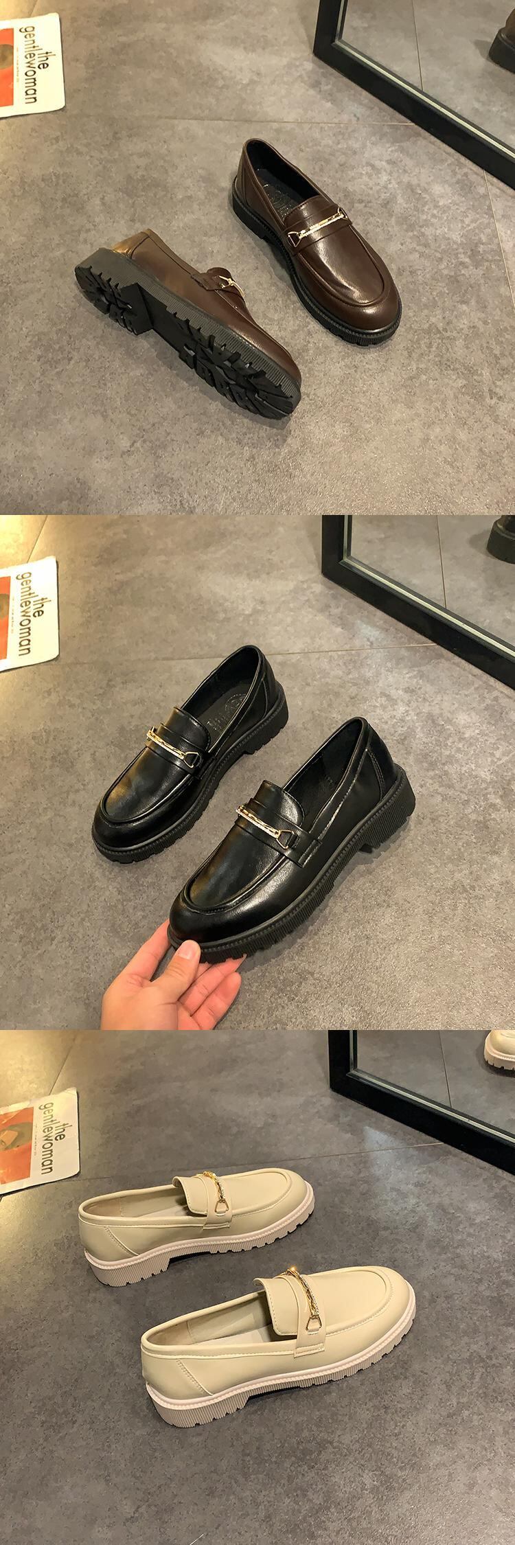 スタンダードレザースプリングブラックソリッド カラー 靴 シューズ レトロ 春物 ラウンドトー ソリッドカラー 部族の婦人靴71893105527