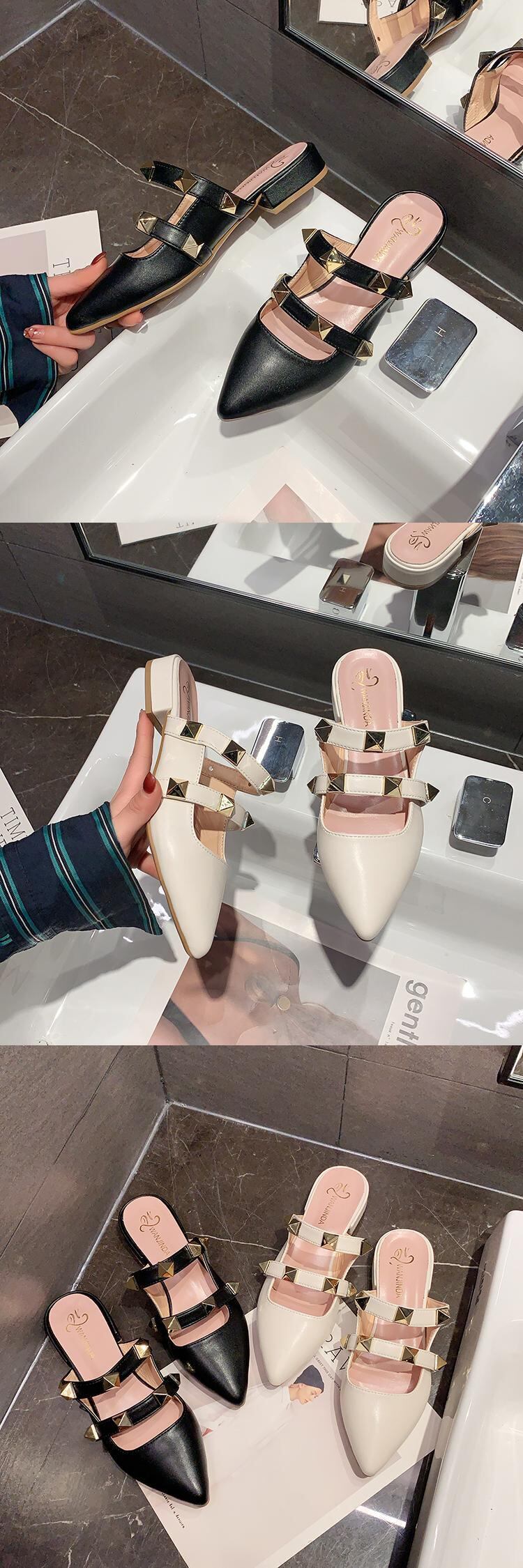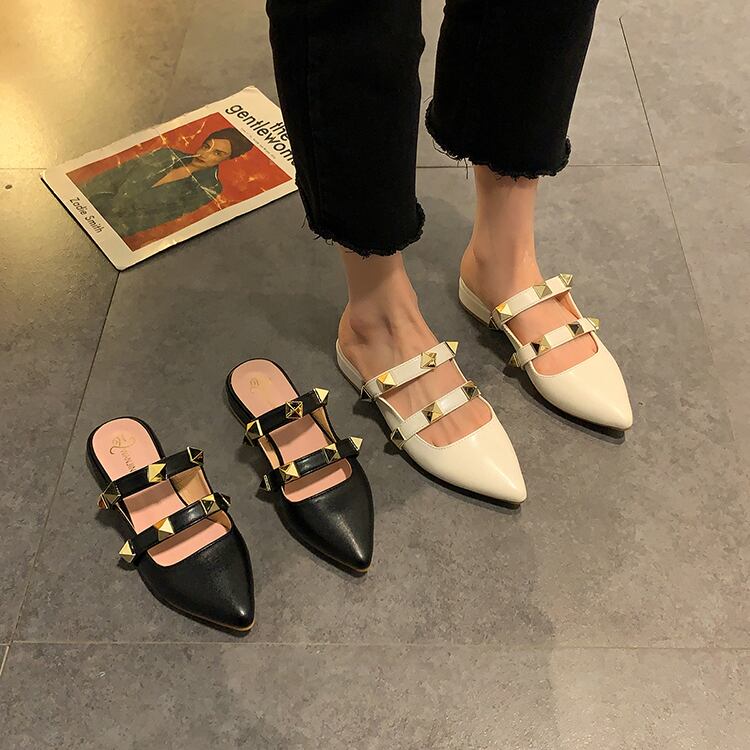 ミュールスプリングブラックカジュアル 靴 シューズ 春物 部族の婦人靴75703678545