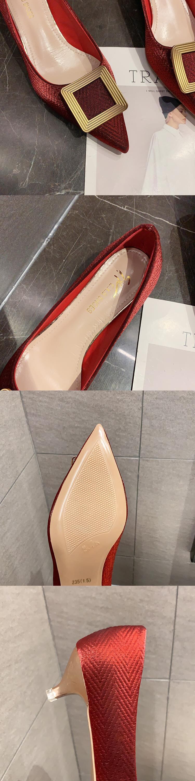 レッドヒールスプリングシングルメタルバックル 靴 シューズ ハイヒール 春物 部族の婦人靴85960345842