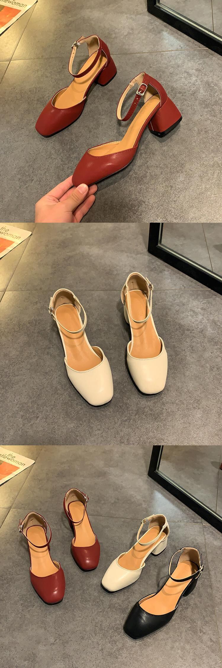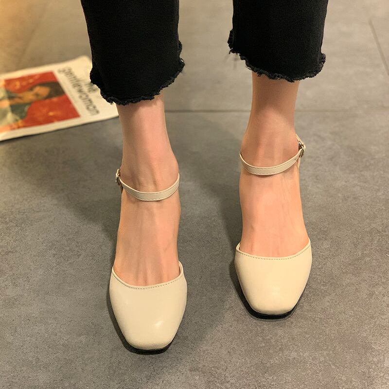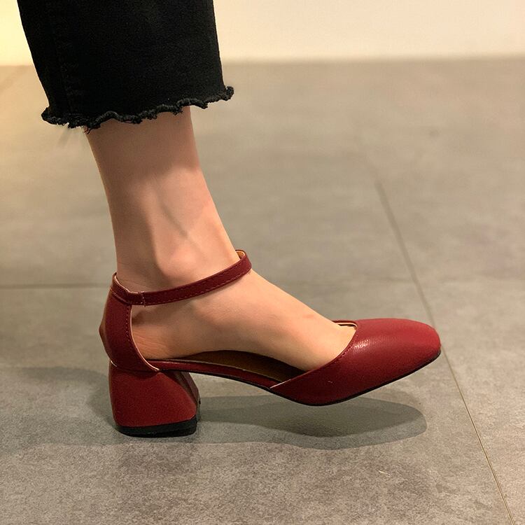 シングルスプリングイブニングスタンダードバックルヒール 靴 シューズ レトロ ハイヒール 春物 スクウェア 部族の婦人靴81554366200