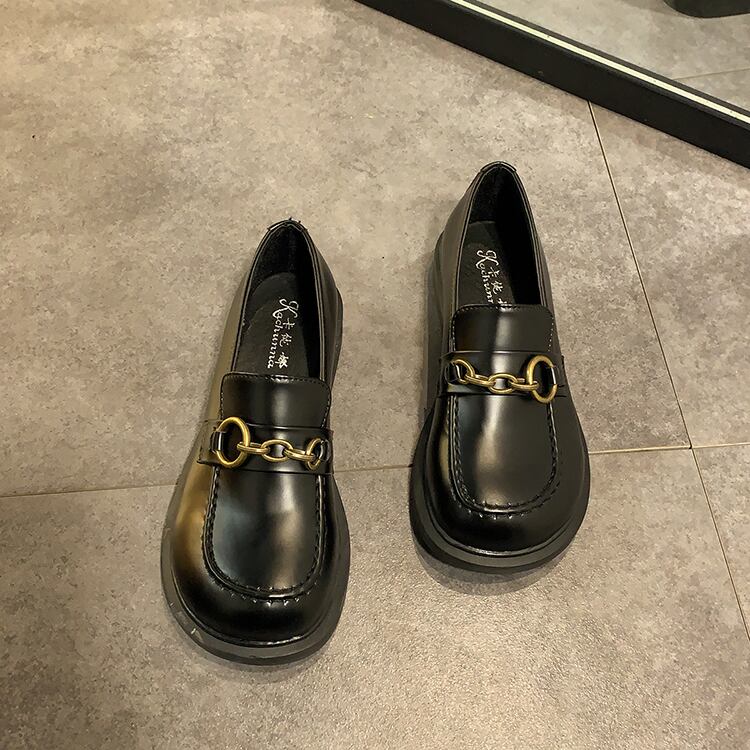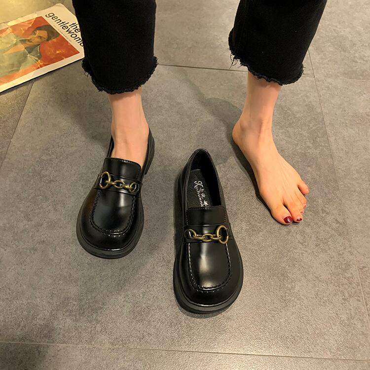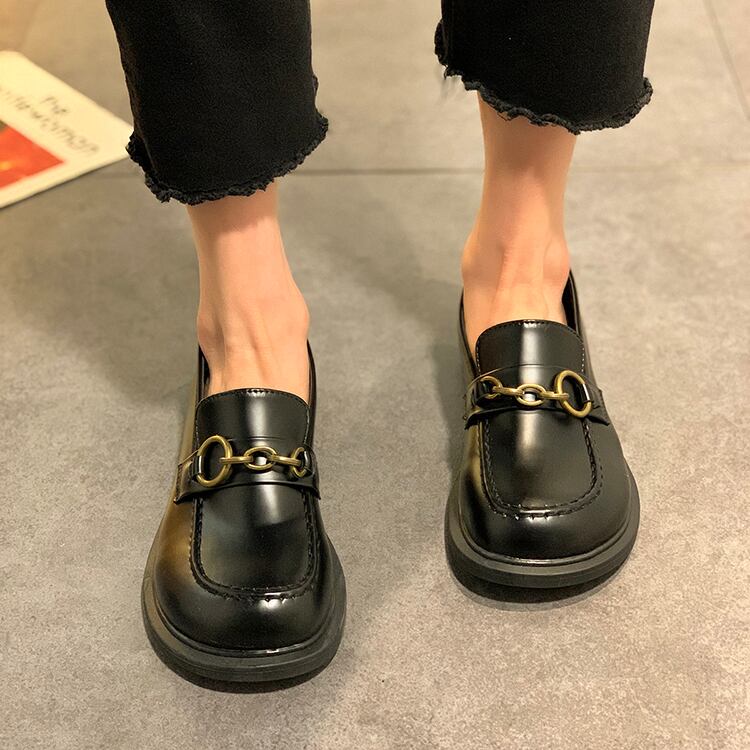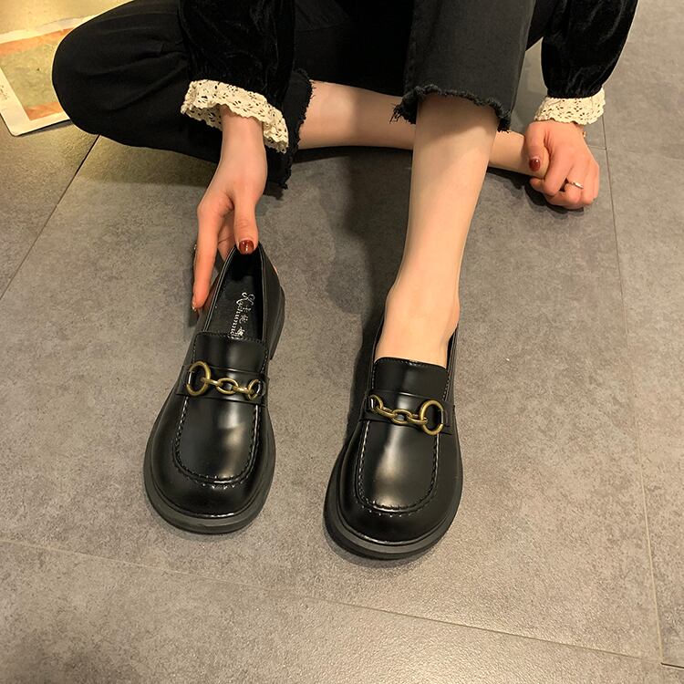 レザースプリングブラックレッドカジュアルシングル 靴 シューズ ローファー 春物 ラウンドトー 部族の婦人靴22062302993
