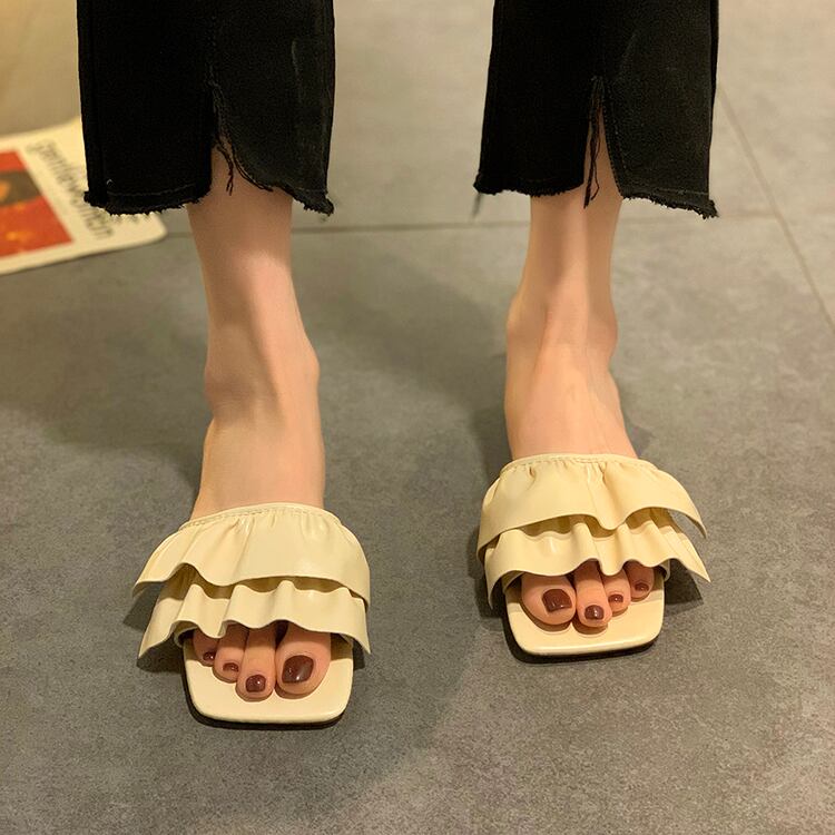 ミュールレッドソリッド カラーサンダルサマー 靴 シューズ 夏物 ソリッドカラー 部族の婦人靴74935735379