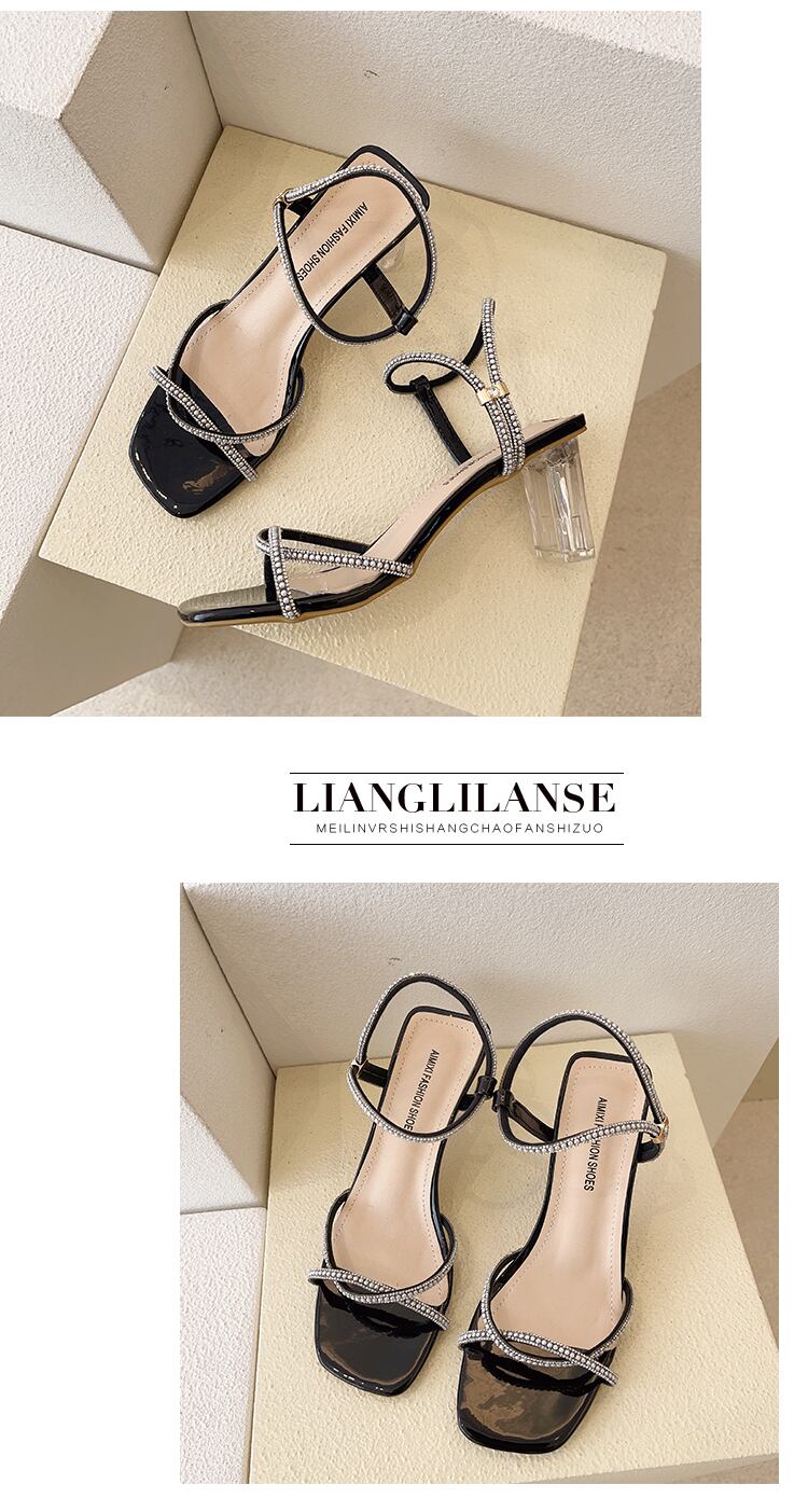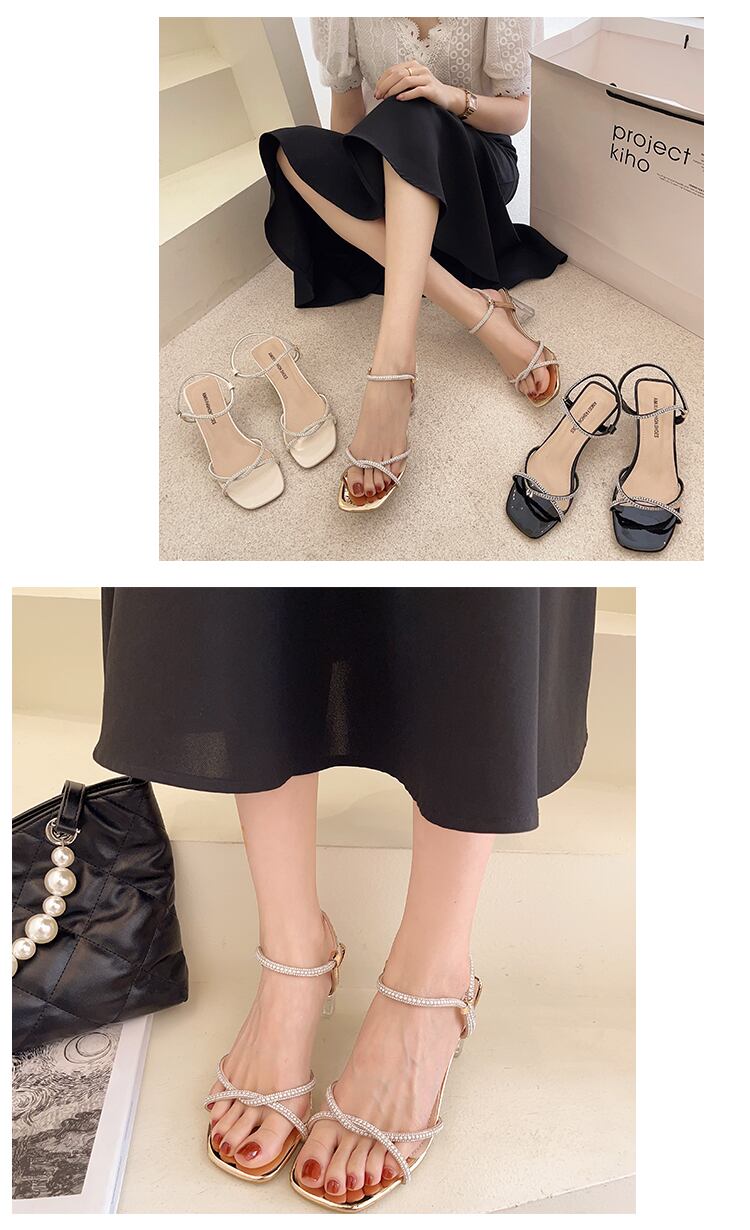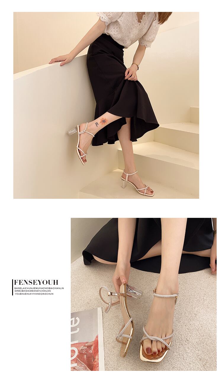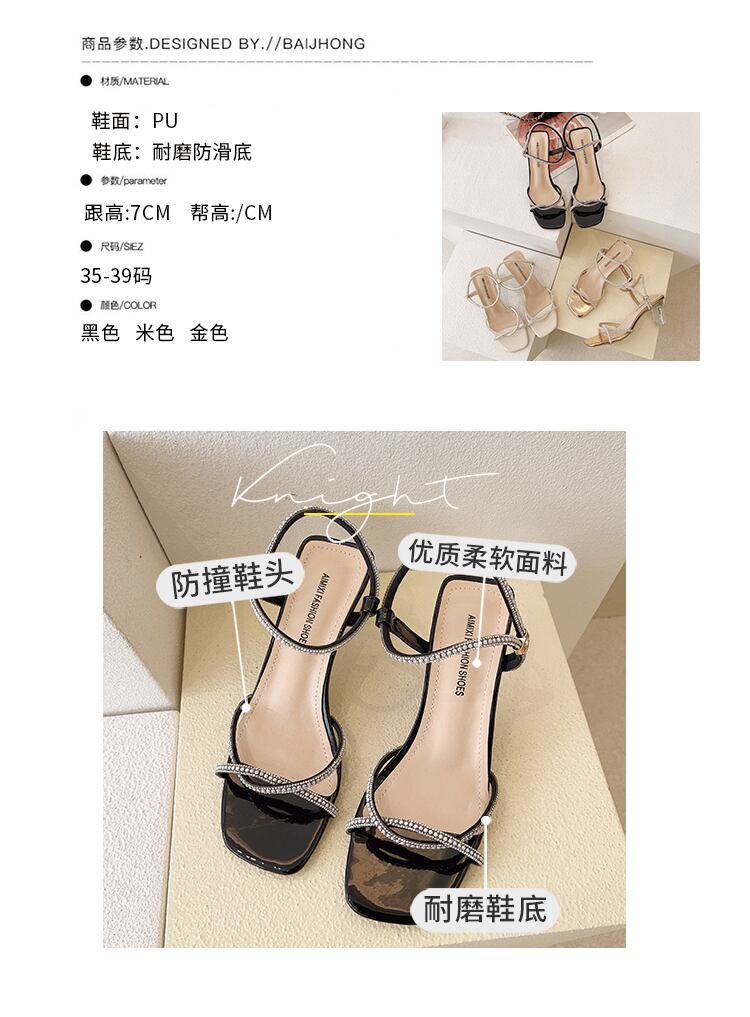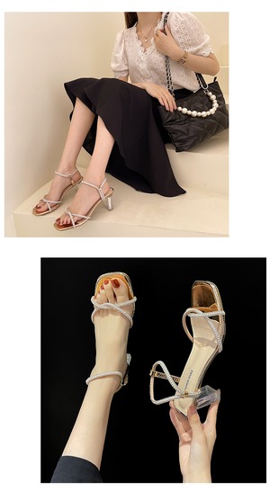 サンダルサマーカジュアルソリッド カラーラインストーンハイヒール 靴 シューズ 夏物 ソリッドカラー 部族の婦人靴94834963575