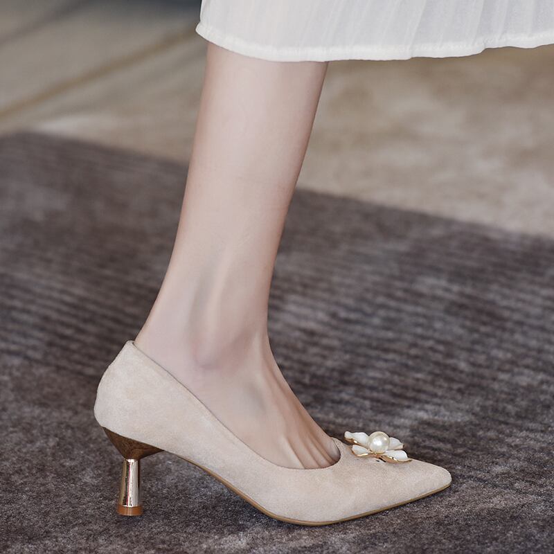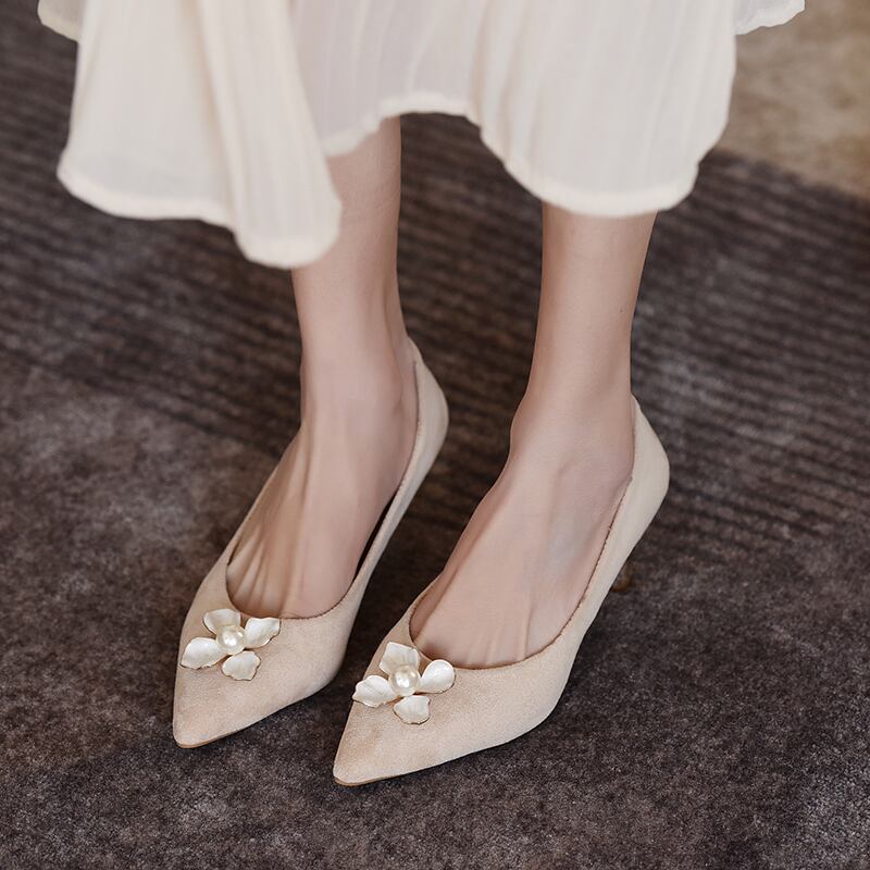 シングルレディーススプリングレッドヒール 靴 シューズ ハイヒール 春物 パール 真珠 部族の婦人靴65955848877