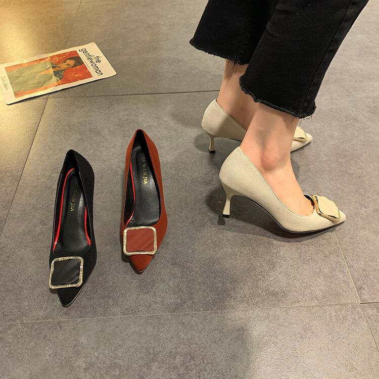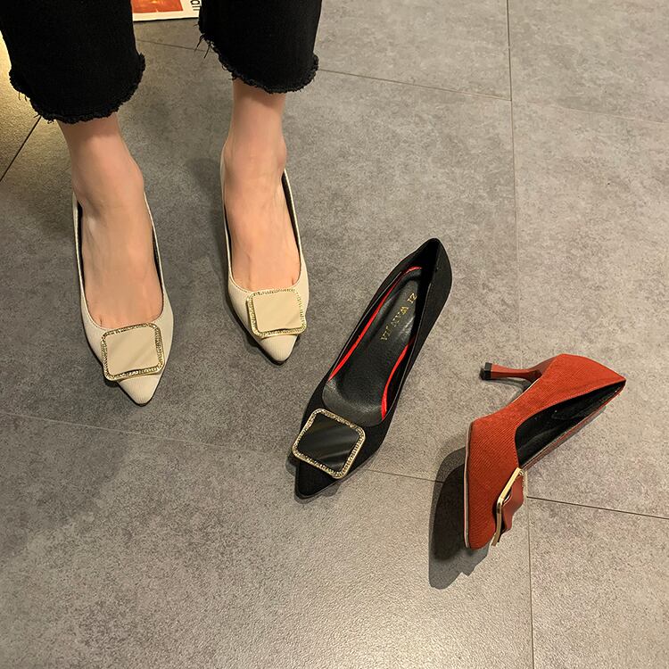 ヒールスプリングレッドソリッド カラーシングル 靴 シューズ 春物 ソリッドカラー 部族の婦人靴29634984083
