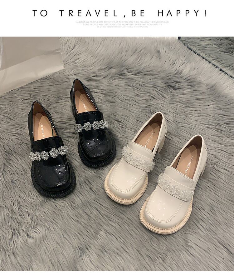 ホワイトレザースタイルヒールスプリングスタンダードシングル 靴 シューズ レトロ ハイヒール 春物 部族の婦人靴78990941078