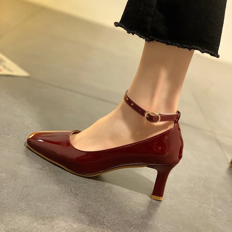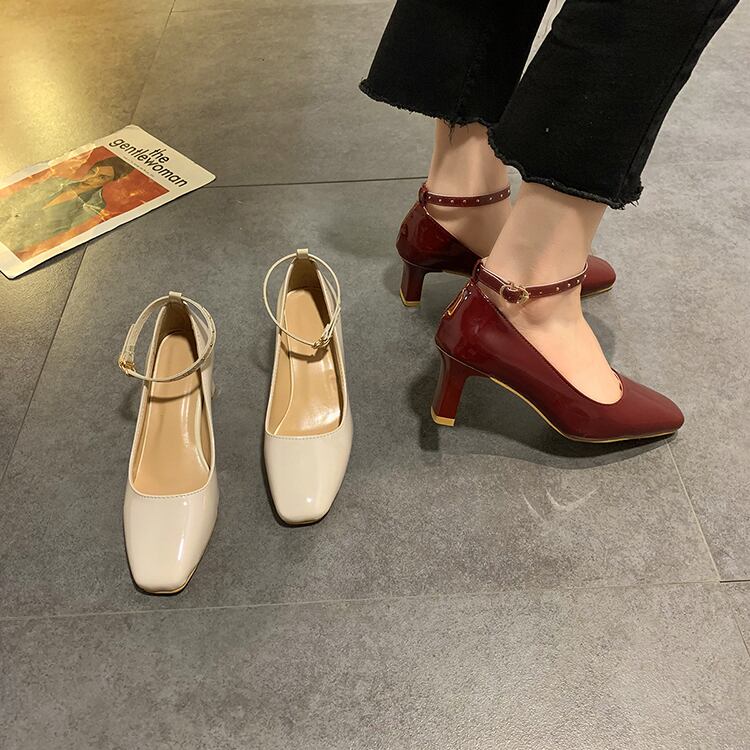 ヒールスプリングレッドバックル 靴 シューズ ハイヒール 春物 スクウェア 部族の婦人靴66123677982