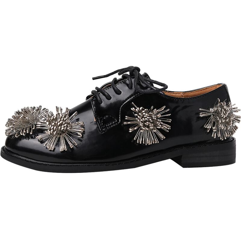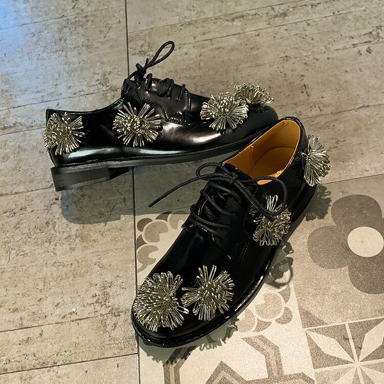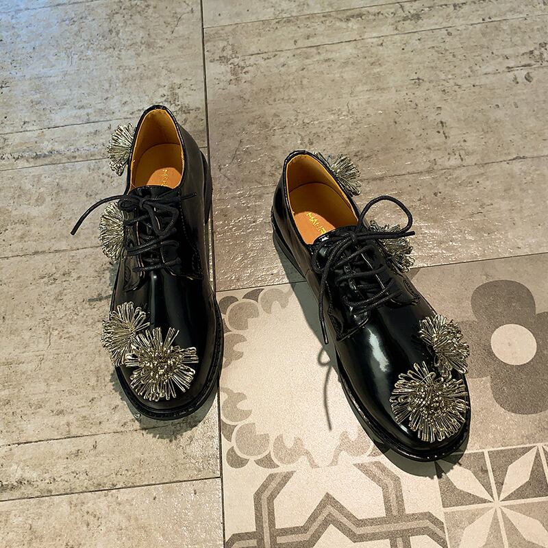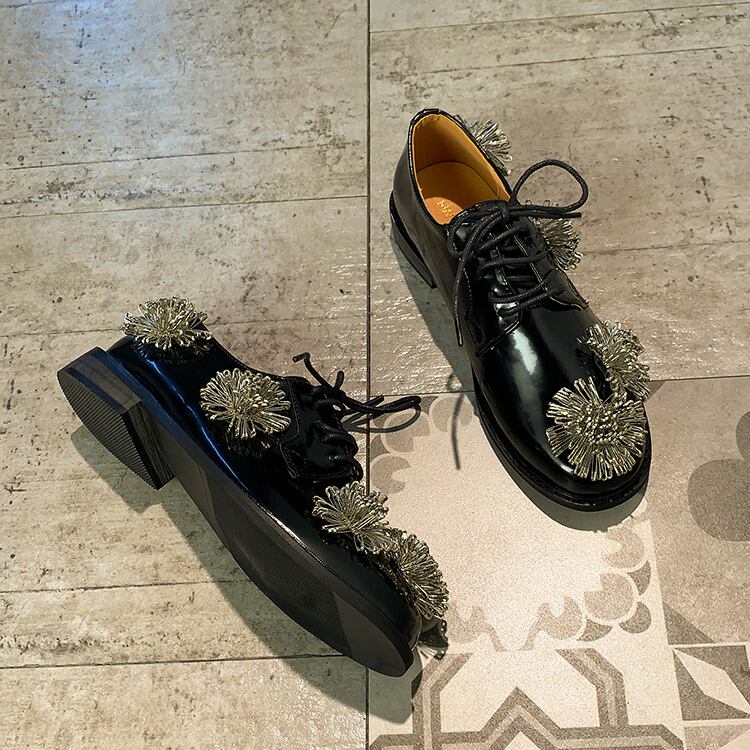 シングルレッドカジュアルブラックレザー 靴 シューズ フラワーデザイン 部族の婦人靴81585708290