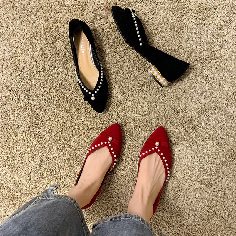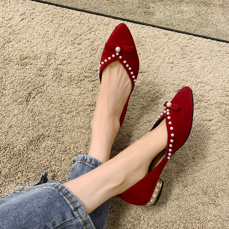 シングルスプリングレッドパール 靴 シューズ 春物 真珠 部族の婦人靴50636380747