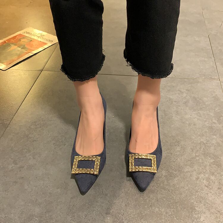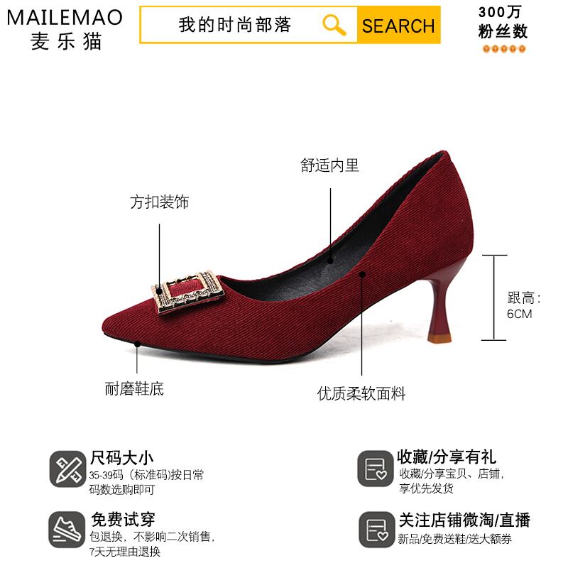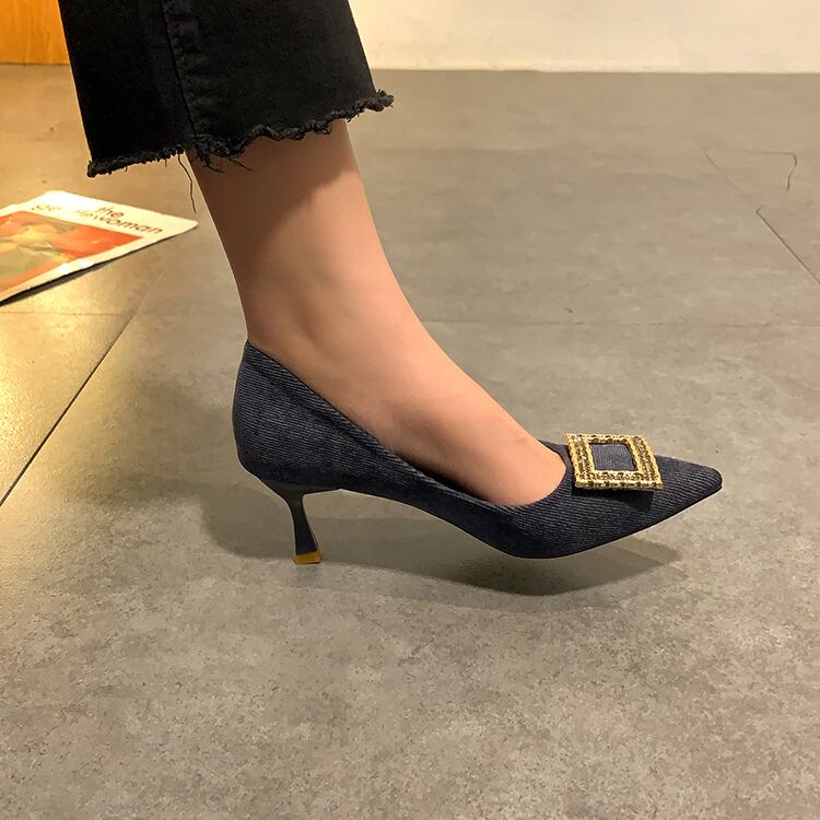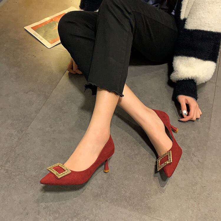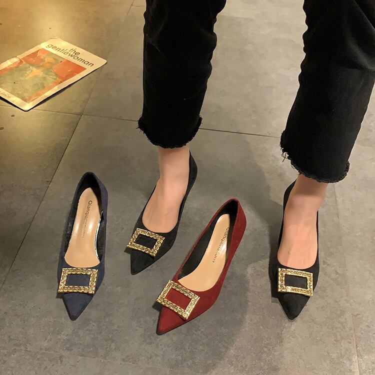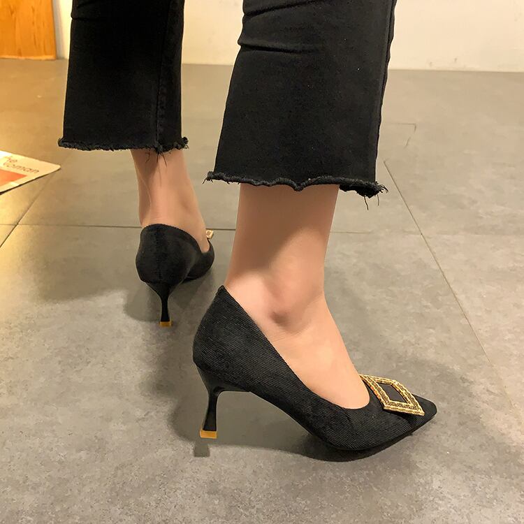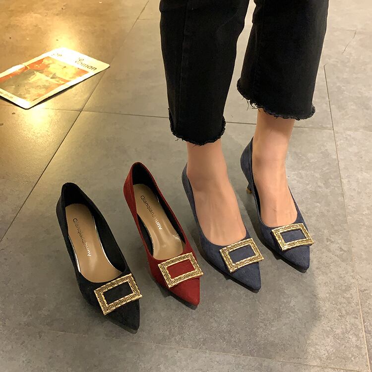 ヒールレディーススプリングバックル 靴 シューズ ハイヒール 春物 スクウェア 部族の婦人靴7341962630