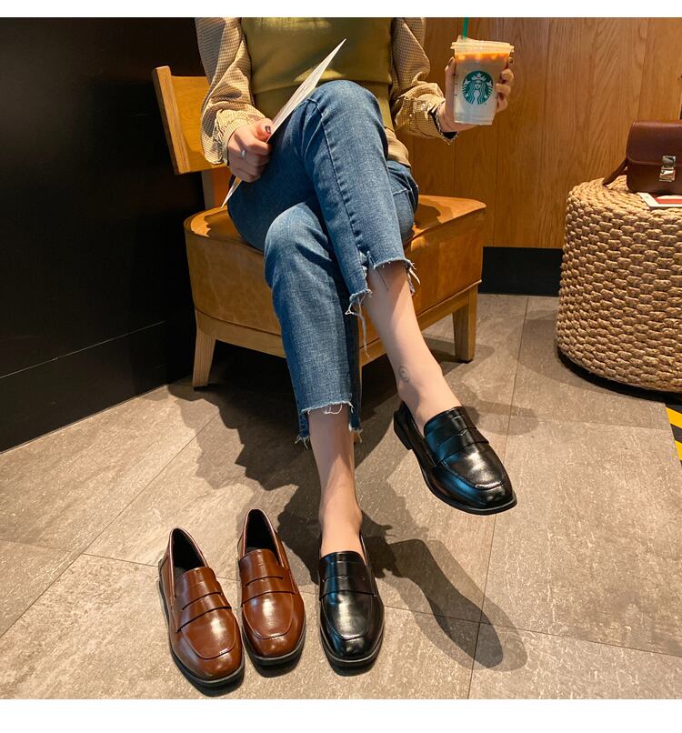 シングルレディースオータムカジュアルソリッド ブラックスタイルレザー 靴 シューズ 秋物 ソリッドカラー 部族の婦人靴54994480506