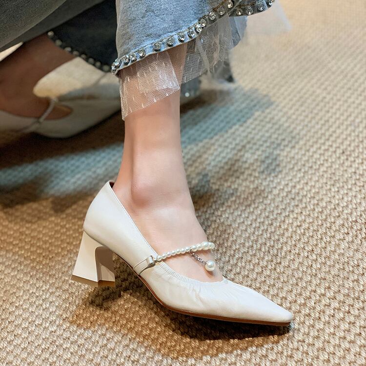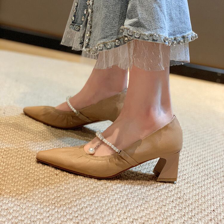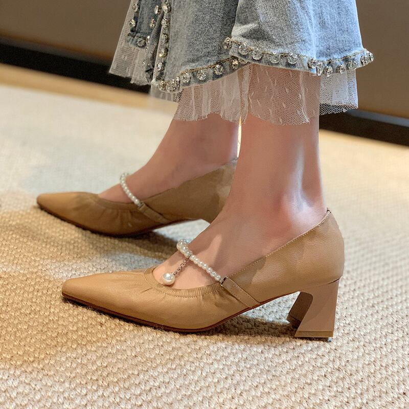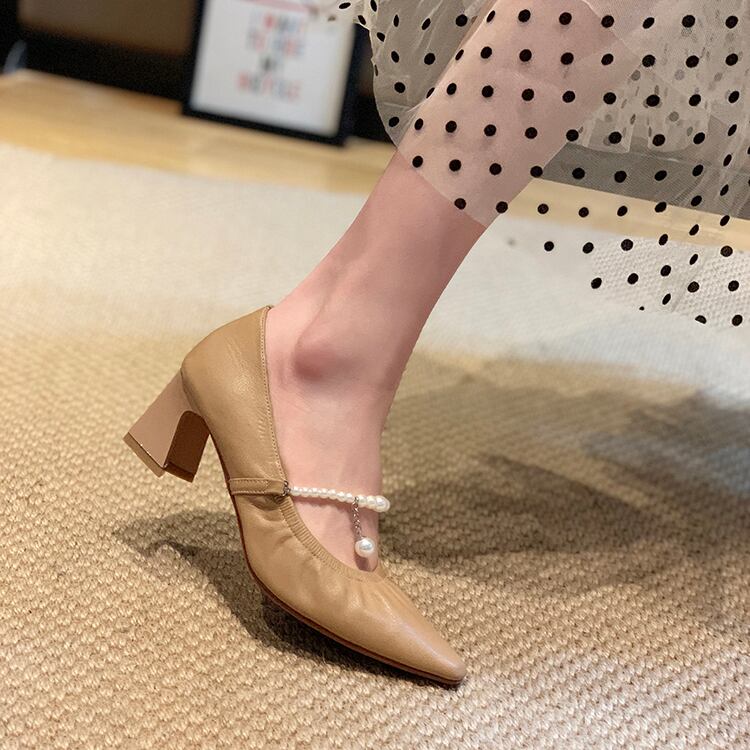 シングルスプリングスタイルレッドカラーパールセット ヒール 靴 シューズ ハイヒール 春物 ピュア 真珠 部族の婦人靴63576460492