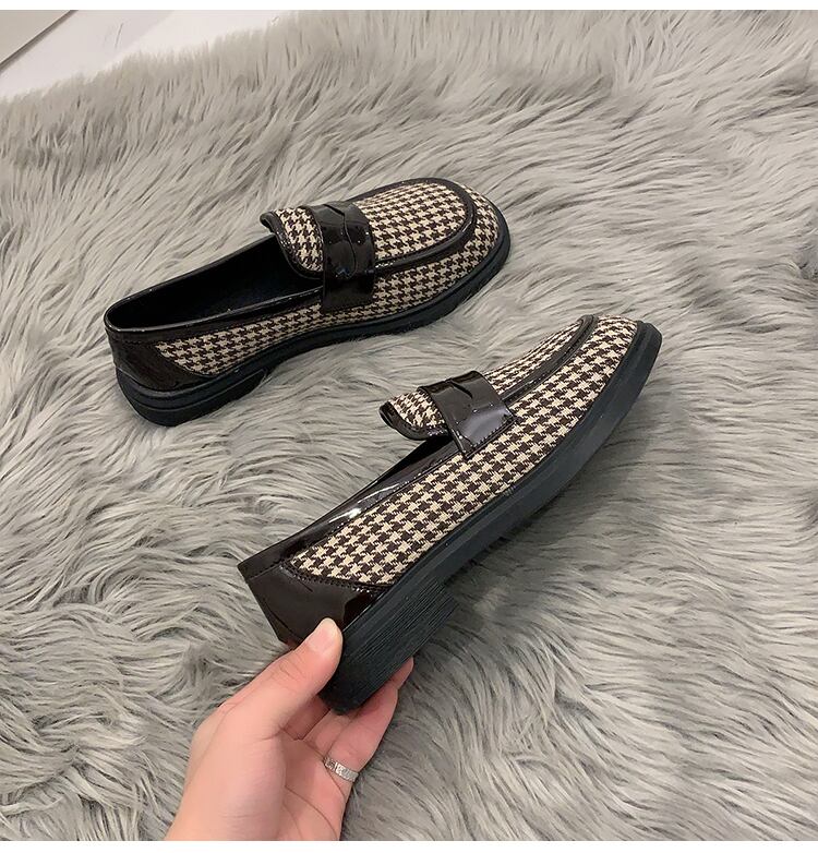 格子柄レザースプリングシングルカジュアル 靴 シューズ レース ローファー 春物 レースアップ 部族の婦人靴55852137931