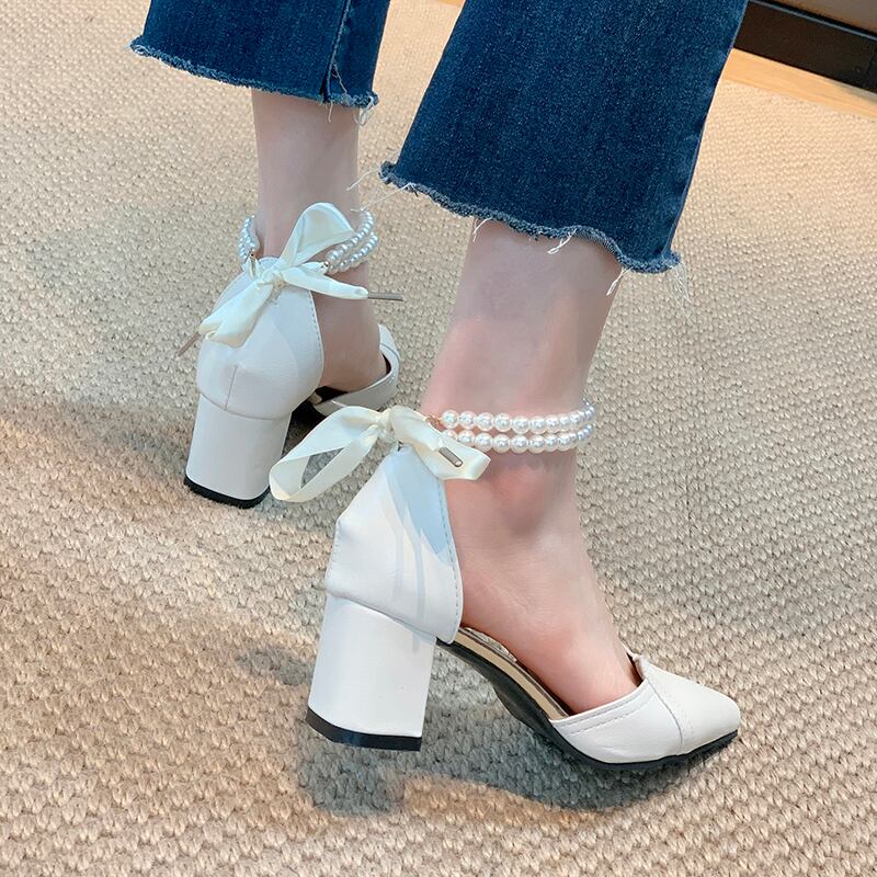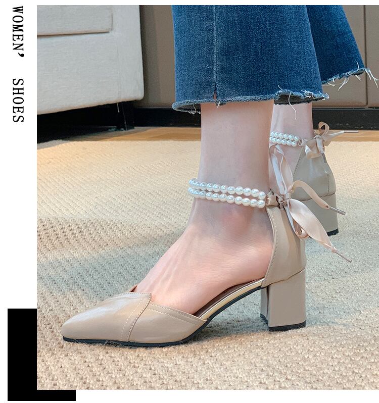 スプリングソリッド カラーパールヒール 靴 シューズ ハイヒール 春物 真珠 ソリッドカラー 部族の婦人靴86580201113