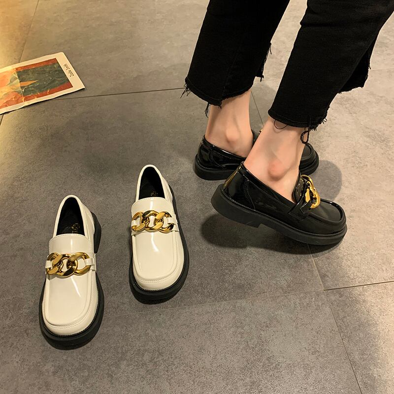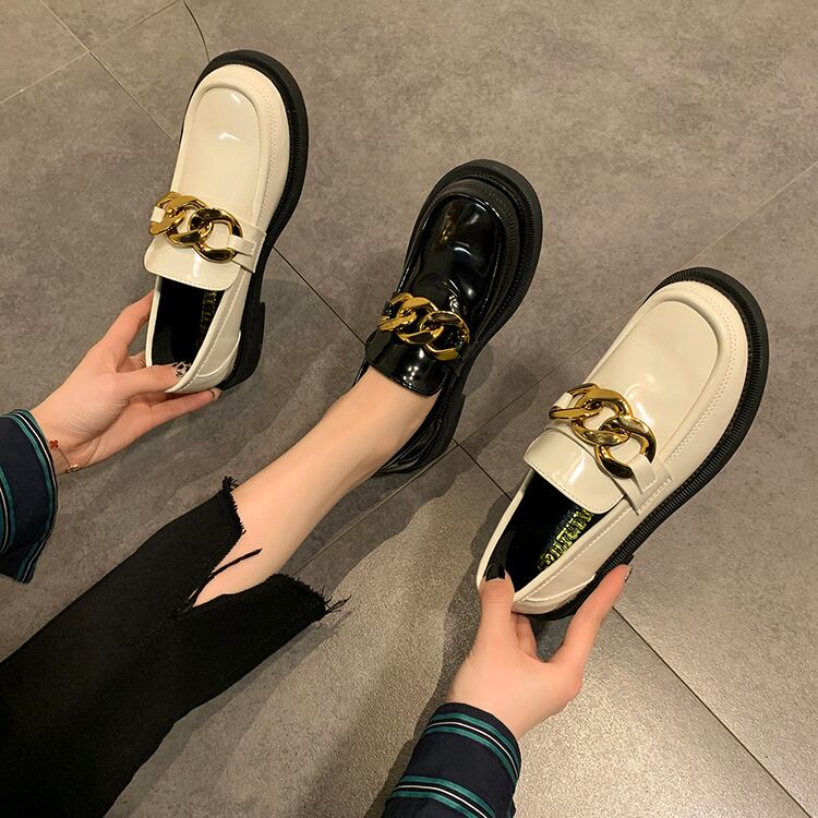 シングルスプリングオータムスタイルホワイトレザー 靴 シューズ 春物 秋物 ラウンドトー 部族の婦人靴74592624192