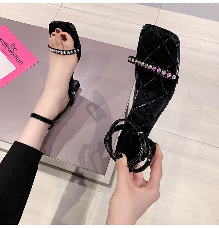 サンダルサマーレッドラインストーンヒール ハイヒール 靴 シューズ 夏物 部族の婦人靴77176882783