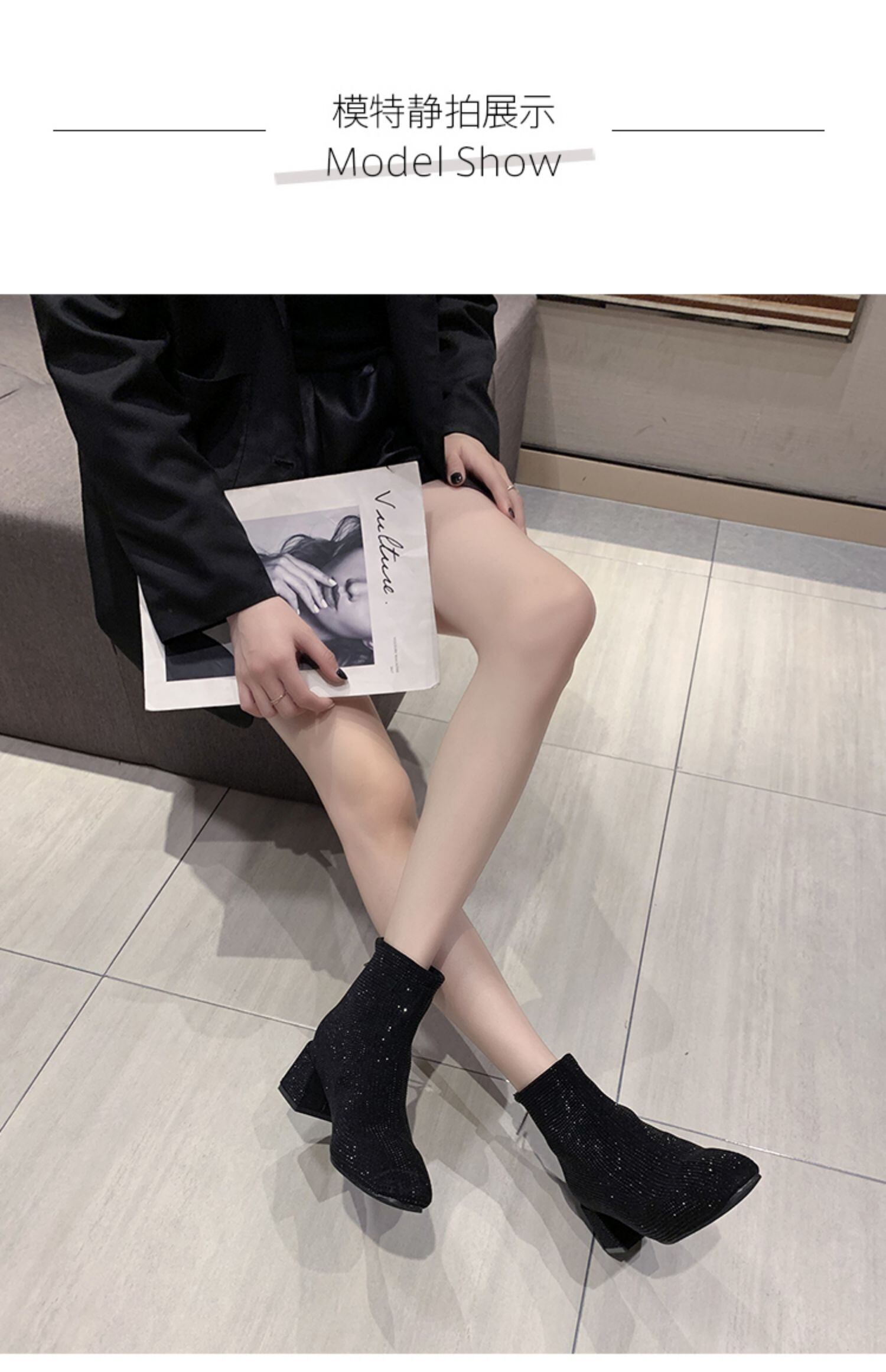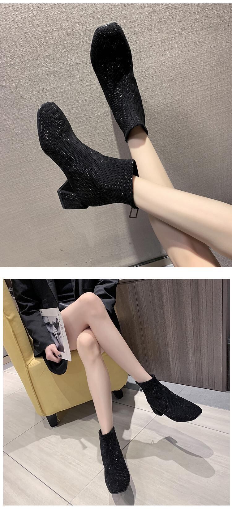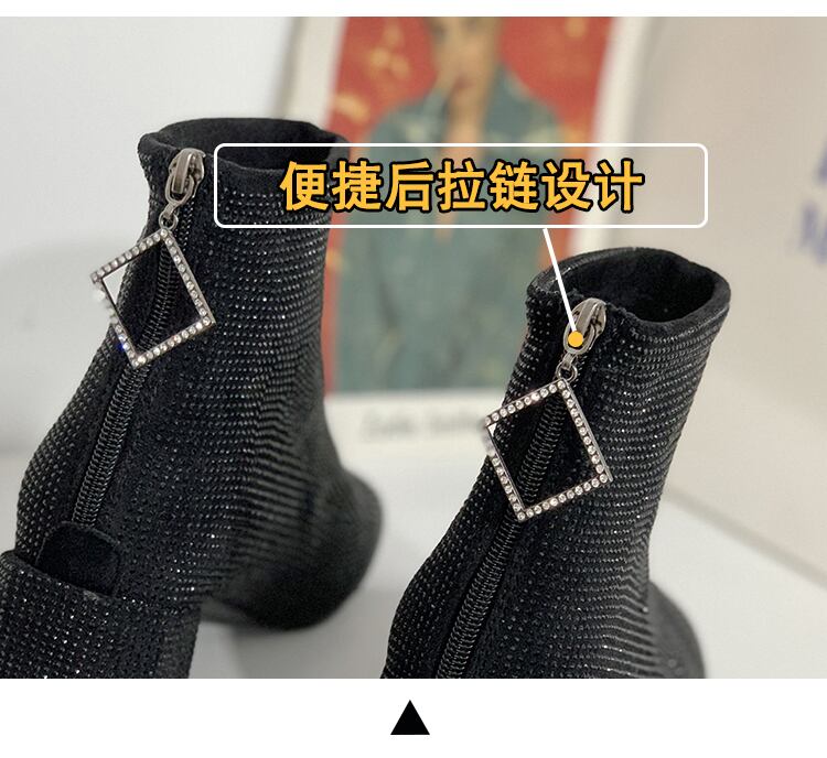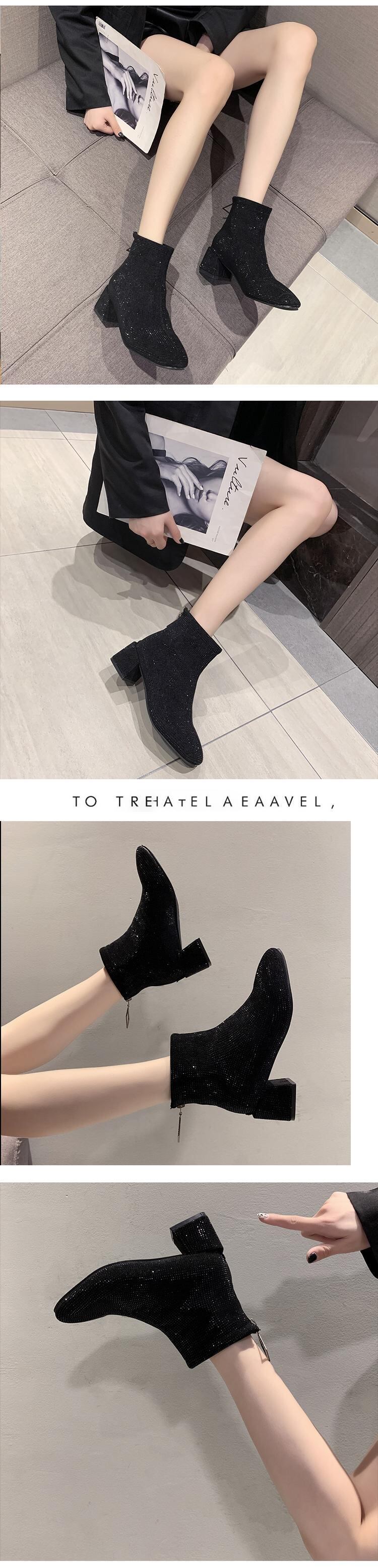 ブーツオータムウィンターカジュアルラインストーンバックジッパーショート 靴 シューズ 秋物 冬物 部族の婦人靴86146838402