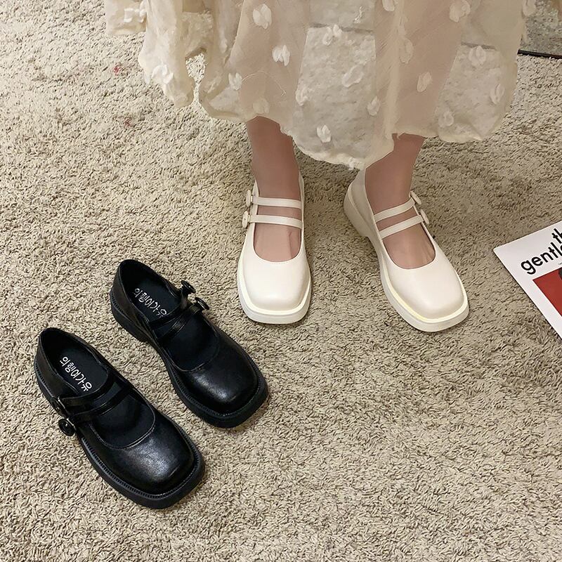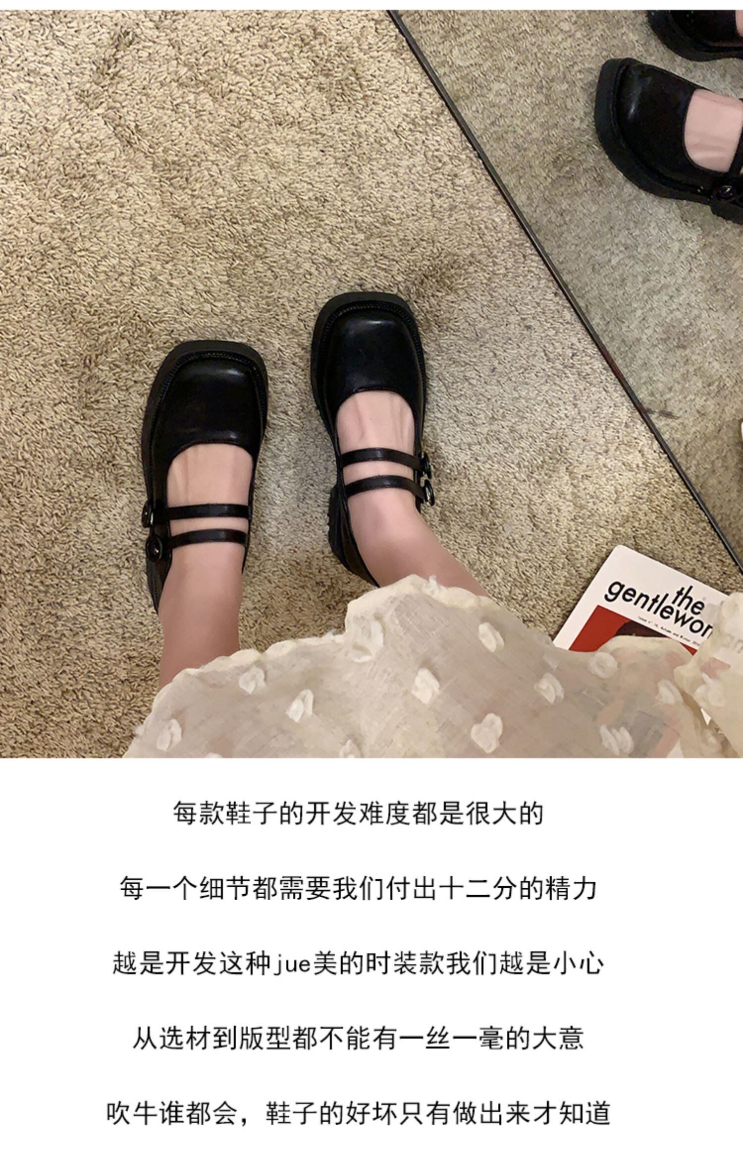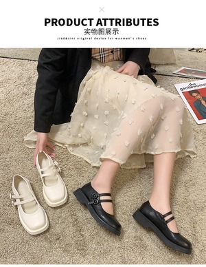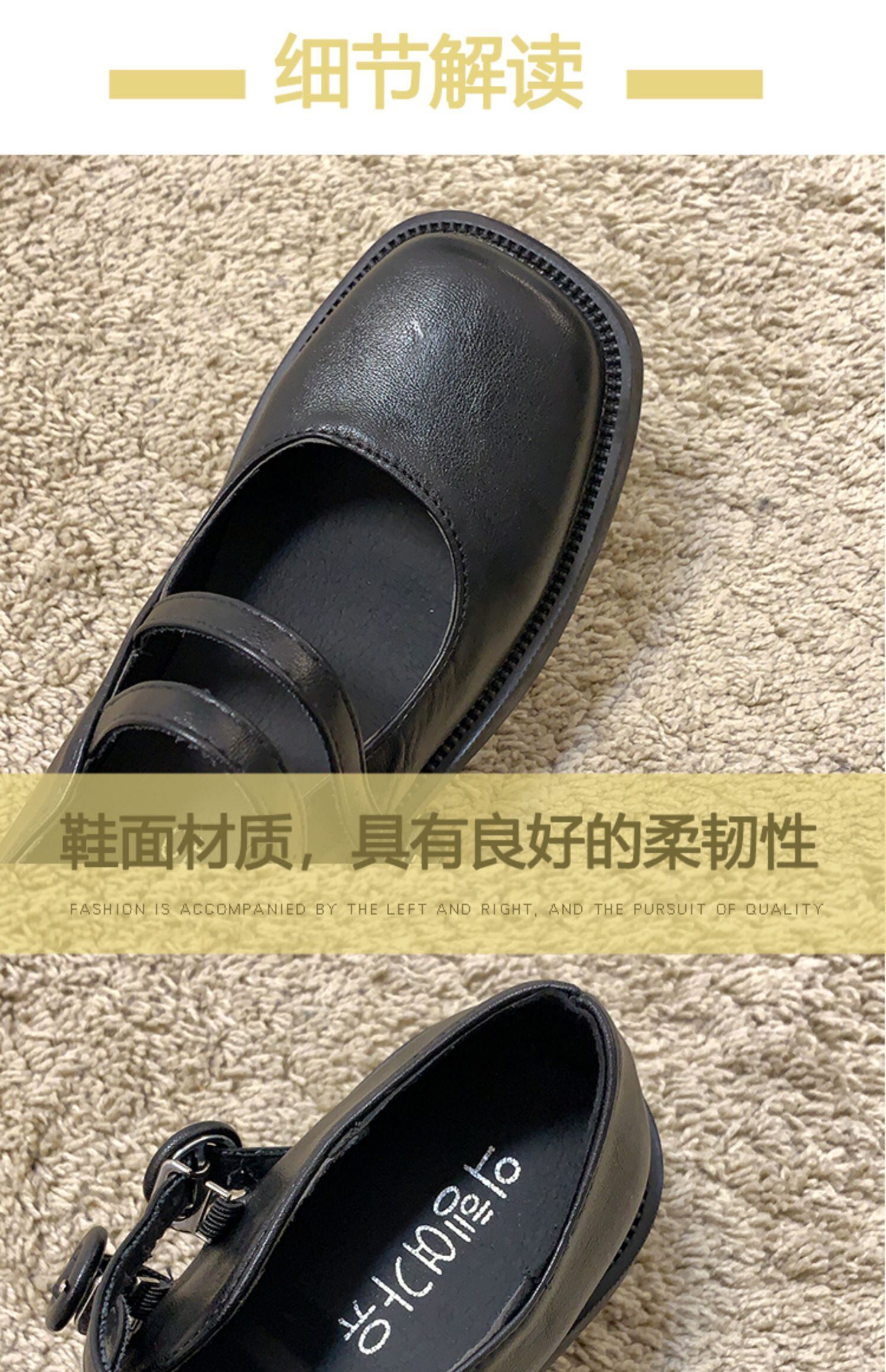 レザースプリングオータムブラック 靴 シューズ 春物 秋物 スクウェア 部族の婦人靴50312284779