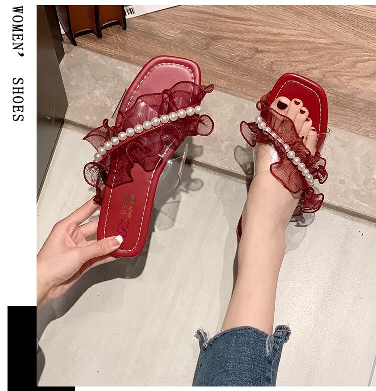 ミュールサマーレッドパール 靴 シューズ 夏物 真珠 部族の婦人靴81814114993