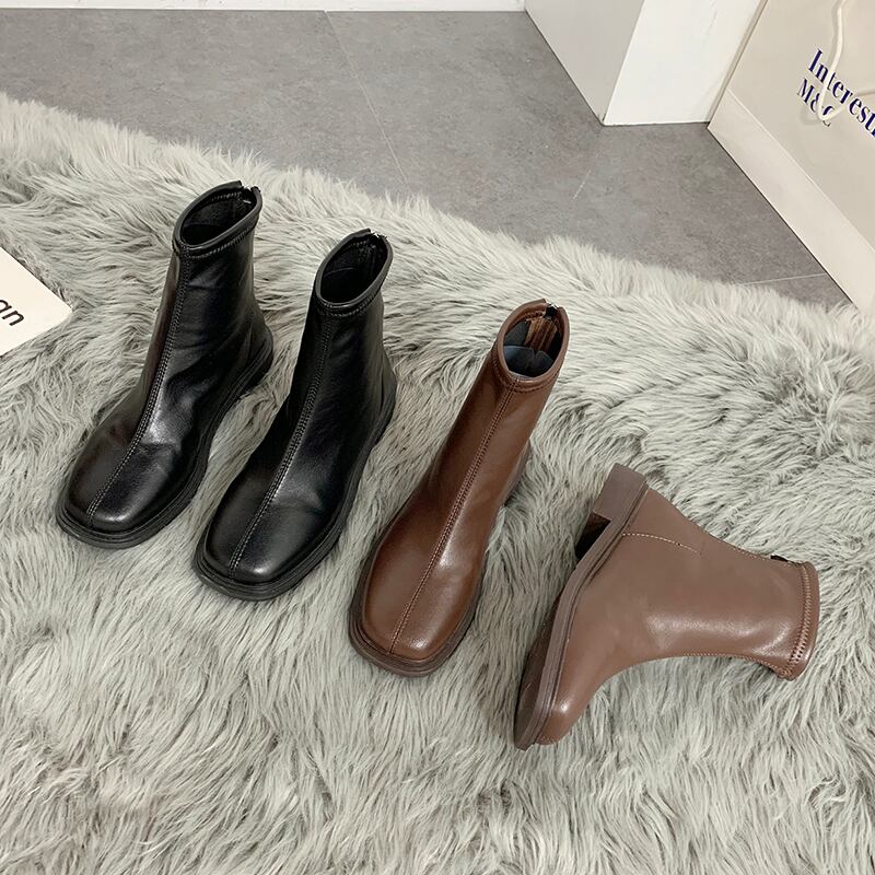 レッド薄手ブーツオータムショートスタイルレザーブラック 靴 シューズ 秋物 スクウェア 部族の婦人靴1388304332