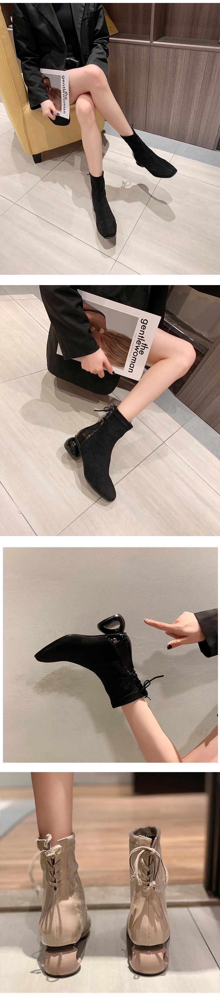 レッド薄手ブーツブラックスタイルオータムショート 靴 シューズ 秋物 部族の婦人靴76403849506