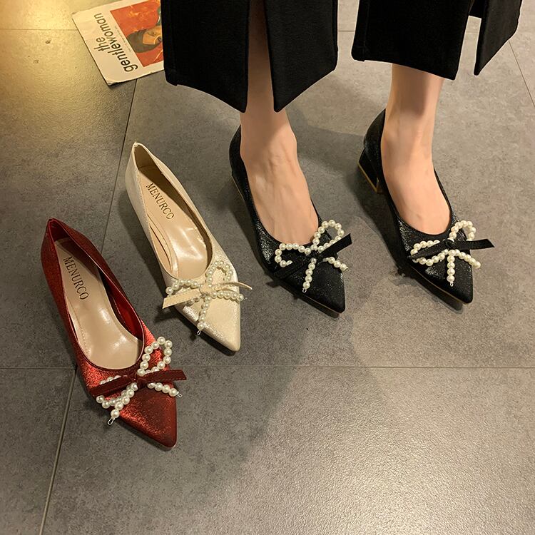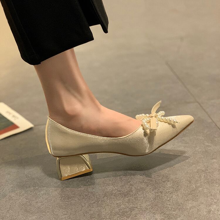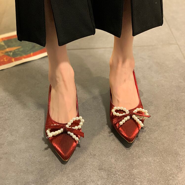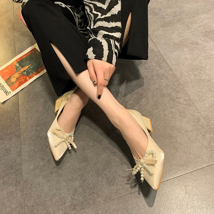 ヒールサマーパールリボン 靴 シューズ ハイヒール 夏物 真珠 部族の婦人靴2650142040