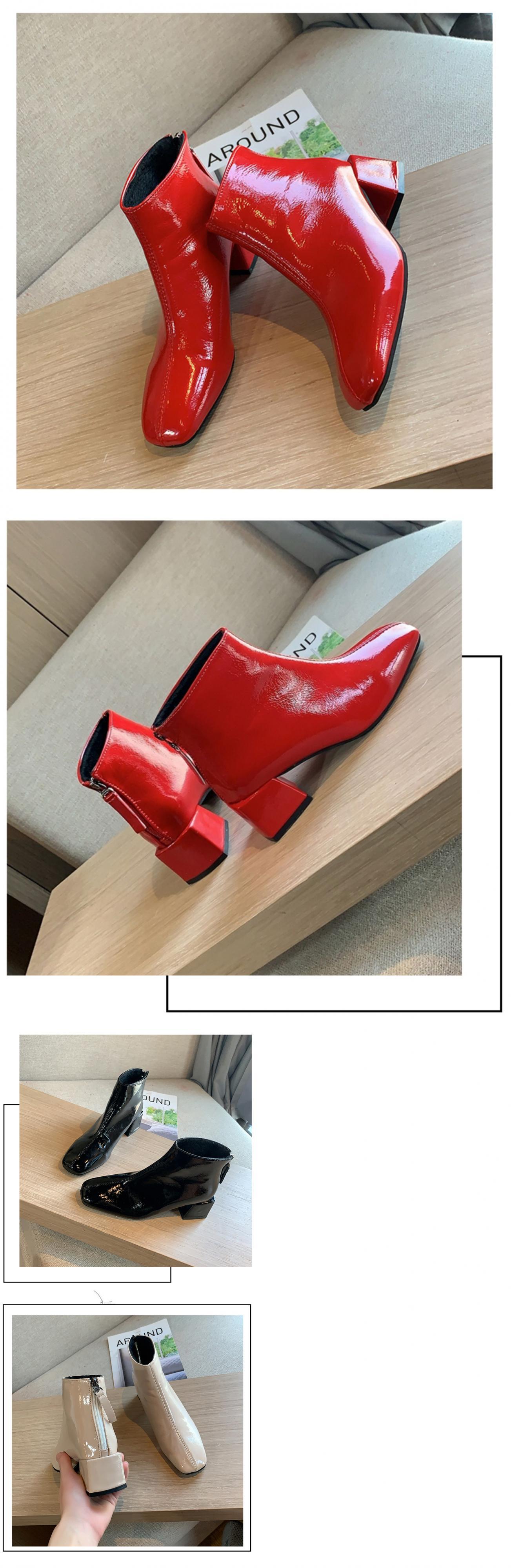 薄手ブーツオータムウィンターブラックショートレッドスタンダード レトロ 靴 シューズ 秋物 冬物 スクウェア 部族の婦人靴93902865404