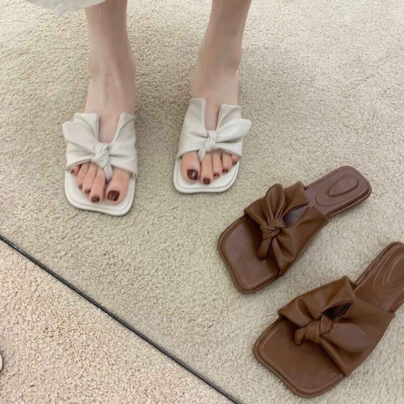 サマーリボンソリッド カラーミュール 靴 シューズ 夏物 ビーチ ソリッドカラー スクウェア 部族の婦人靴52731697339