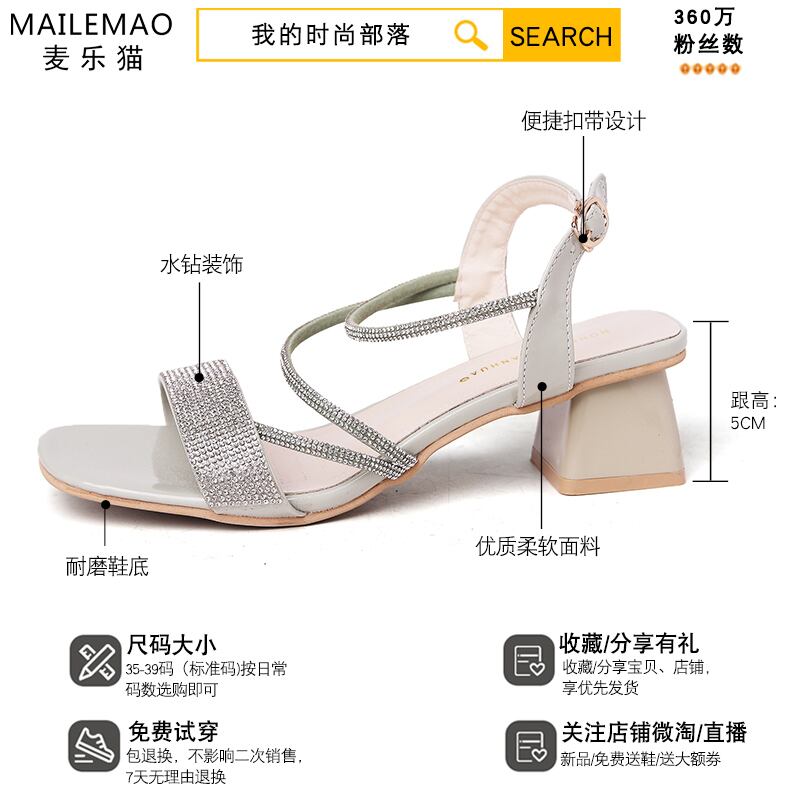 サンダルスタイルサマーラインストーンバックルヒール ハイヒール 靴 シューズ 夏物 部族の婦人靴90122234013
