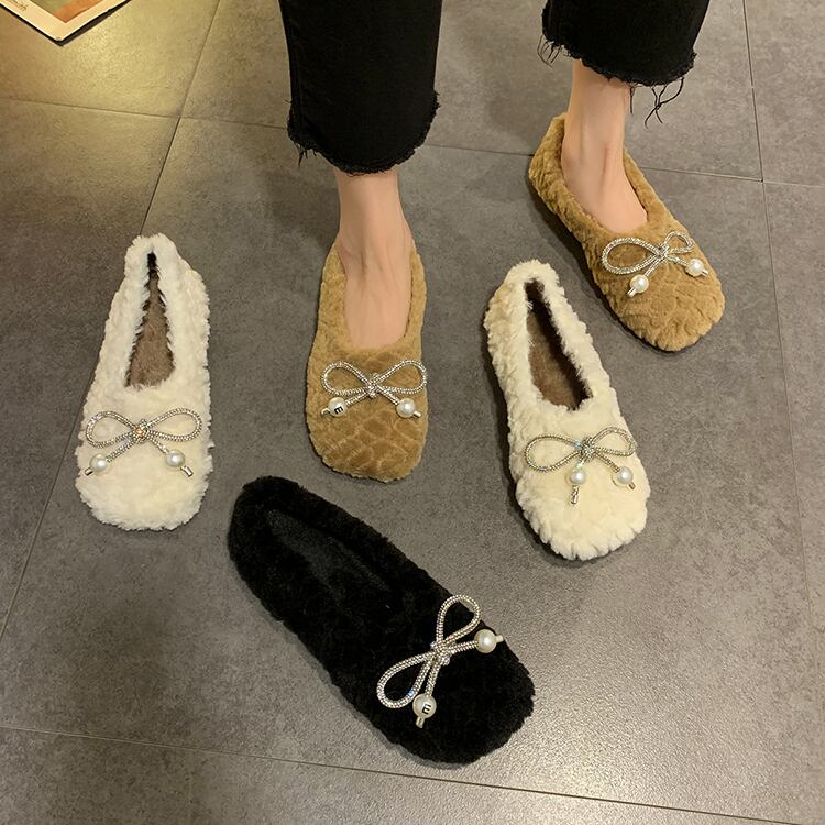 オータムウィンターベルベットリボンスクープレッドシングル 靴 シューズ コットン 秋物 冬物 部族の婦人靴1091336353