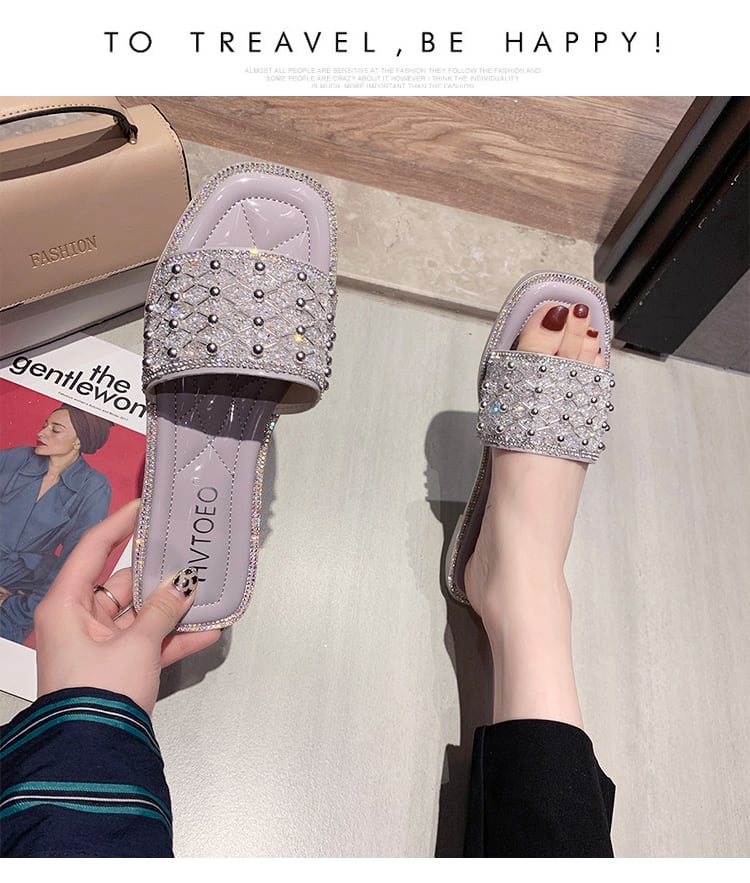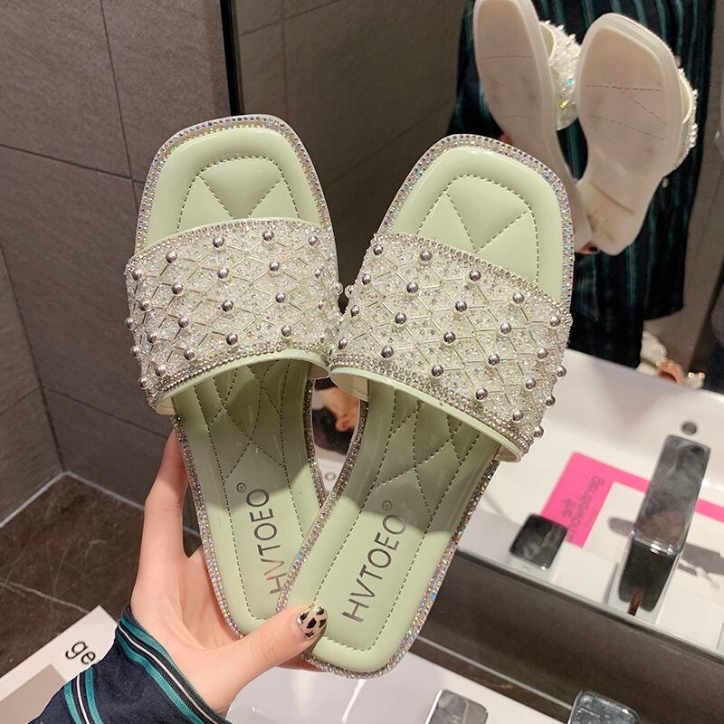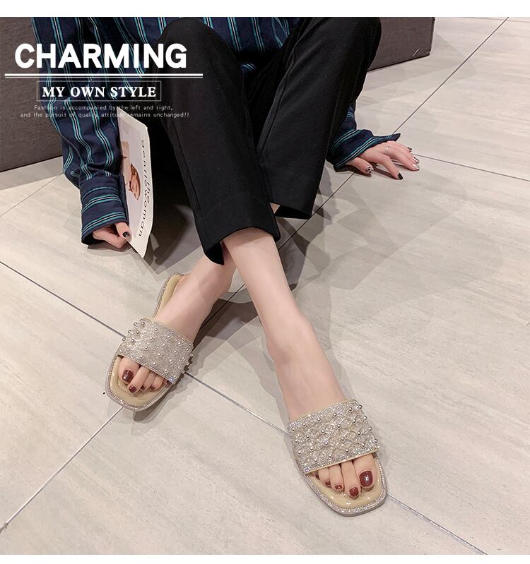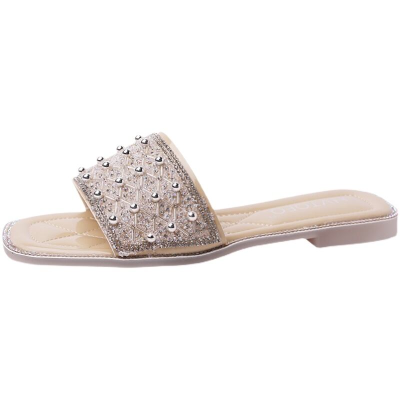 サンダルミュールサマーラインストーンレッド 靴 シューズ 夏物 パール 真珠 部族の婦人靴13353179933
