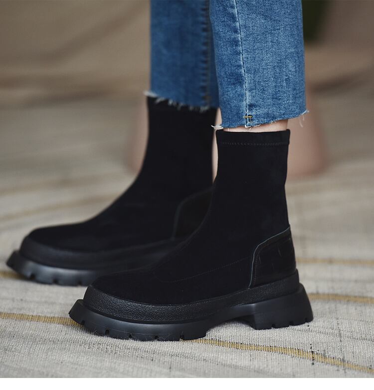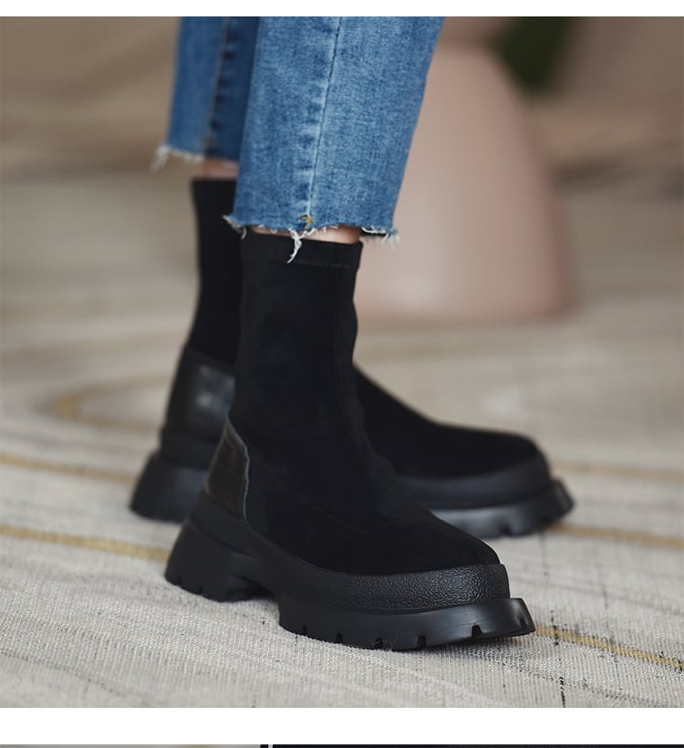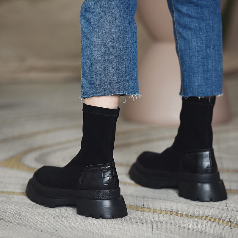 薄手ブーツオータムブラックレッドショート 靴 シューズ エラスティック 伸縮 秋物 部族の婦人靴87515514455
