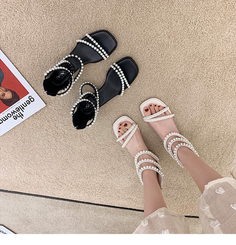 レッドパールサマーサンダル 靴 シューズ 夏物 真珠 部族の婦人靴9528465953