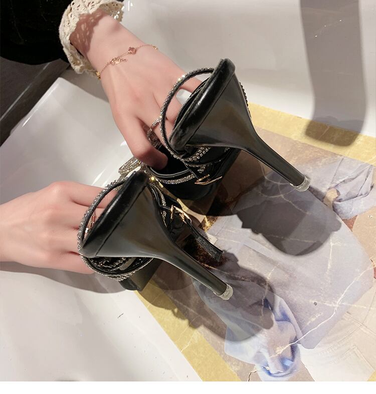 サンダルレディースサマーレッドラインストーンヒール ハイヒール 靴 シューズ 夏物 部族の婦人靴36054216588
