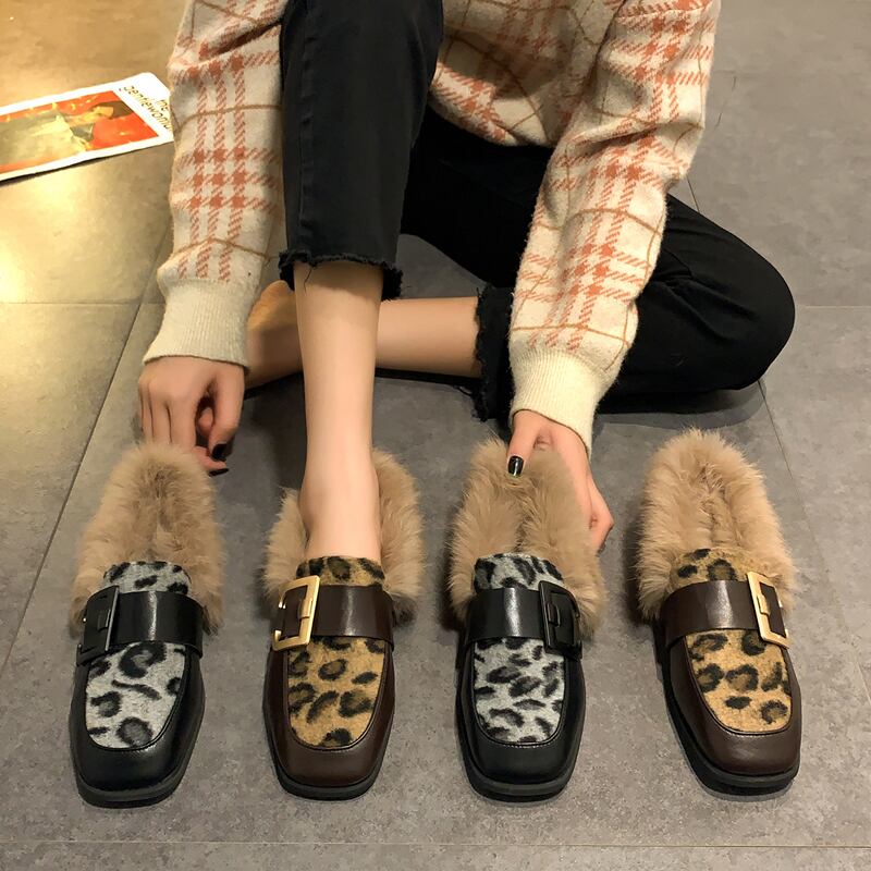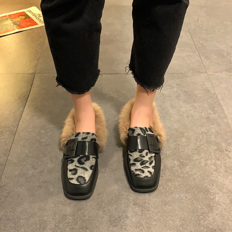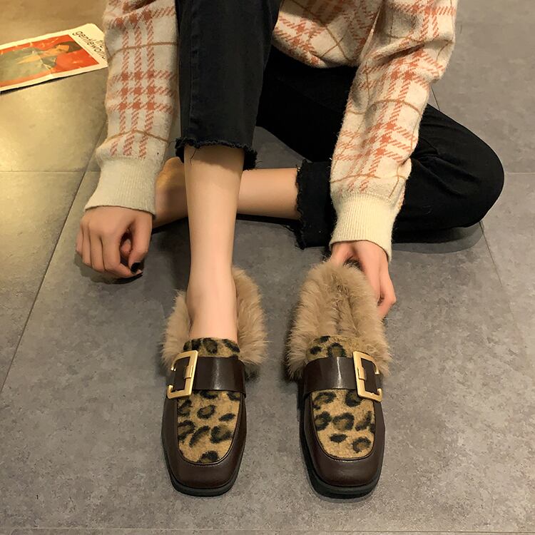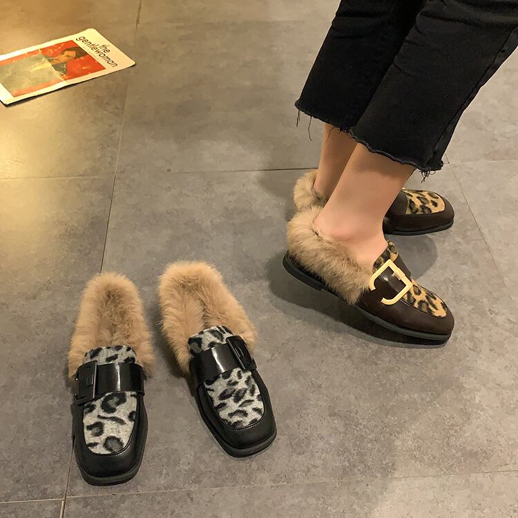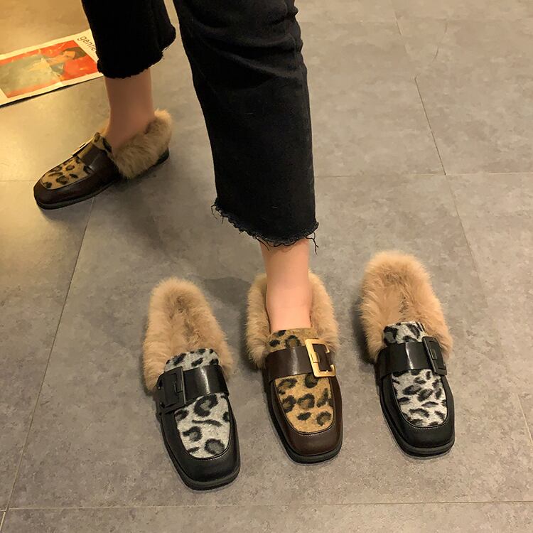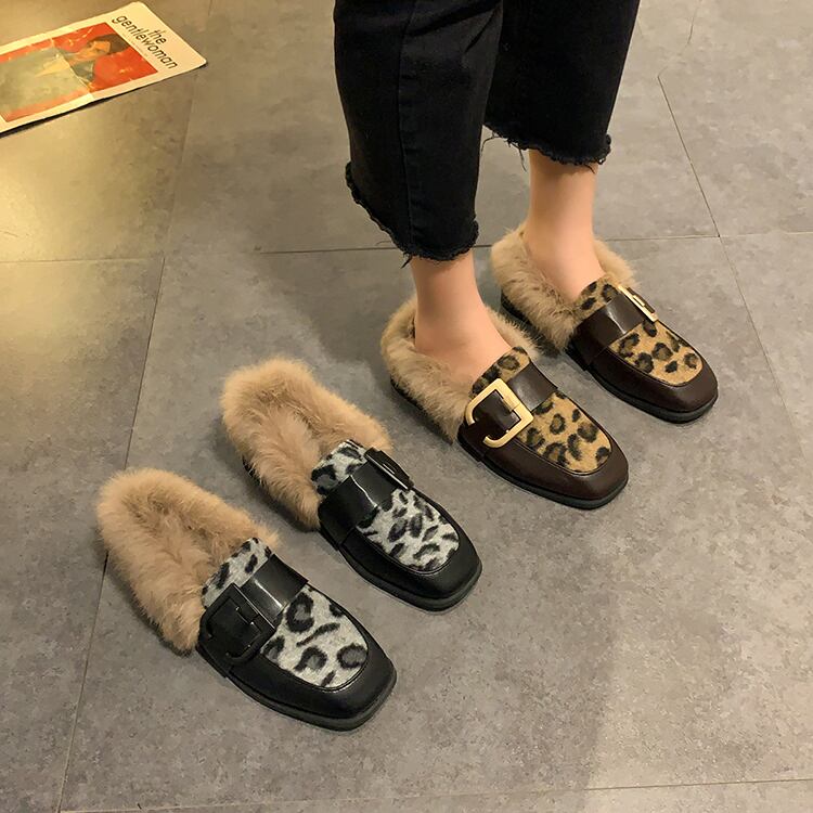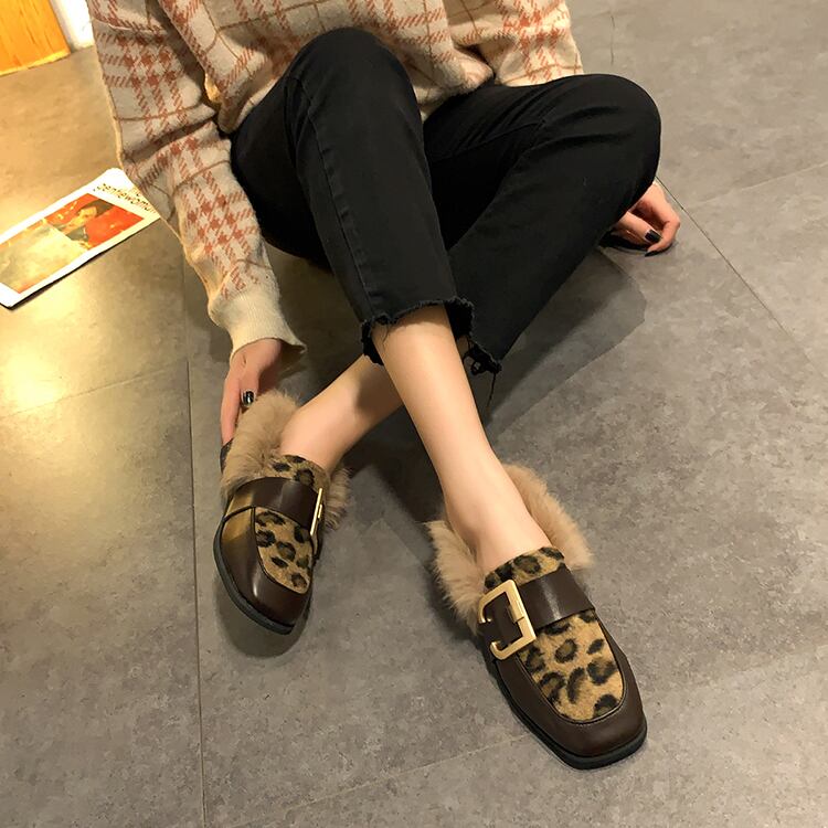 レザースタイルオータムウィンターベルベットレオパードプリント柄 靴 シューズ 秋物 冬物 部族の婦人靴1863234899
