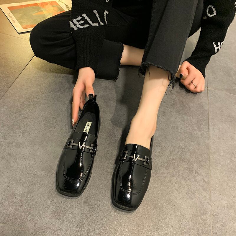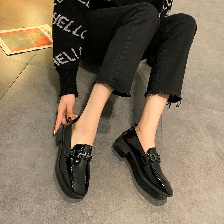 ブラックレザースタイルオータムウィンターシングル 靴 シューズ ローファー 秋物 冬物 部族の婦人靴67928762907