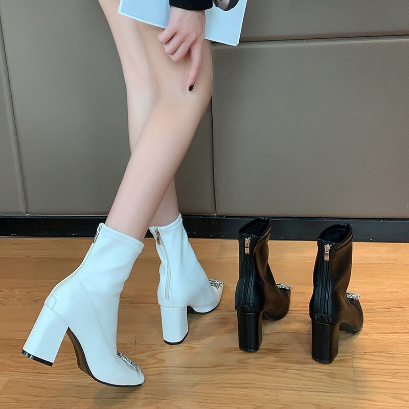 薄手ブーツヒールウィンターブラックレッドホワイトショート ハイヒール 靴 シューズ 冬物 スクウェア 部族の婦人靴19761888019