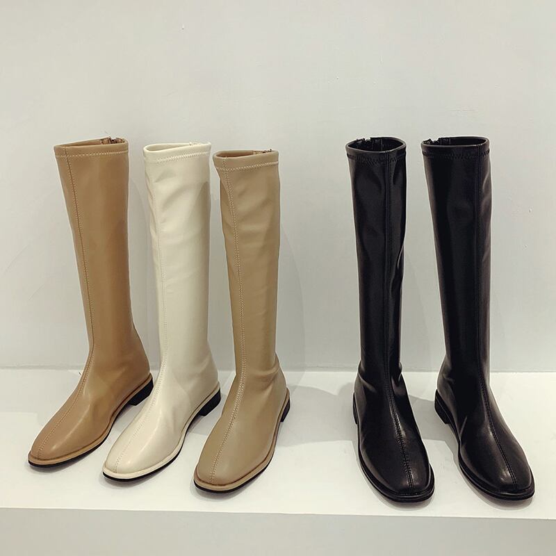 ロングブーツオータムウィンターベージュベルベットレッド 靴 シューズ 秋物 冬物 スクウェア 部族の婦人靴47214073241