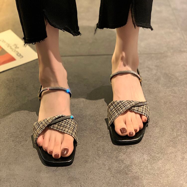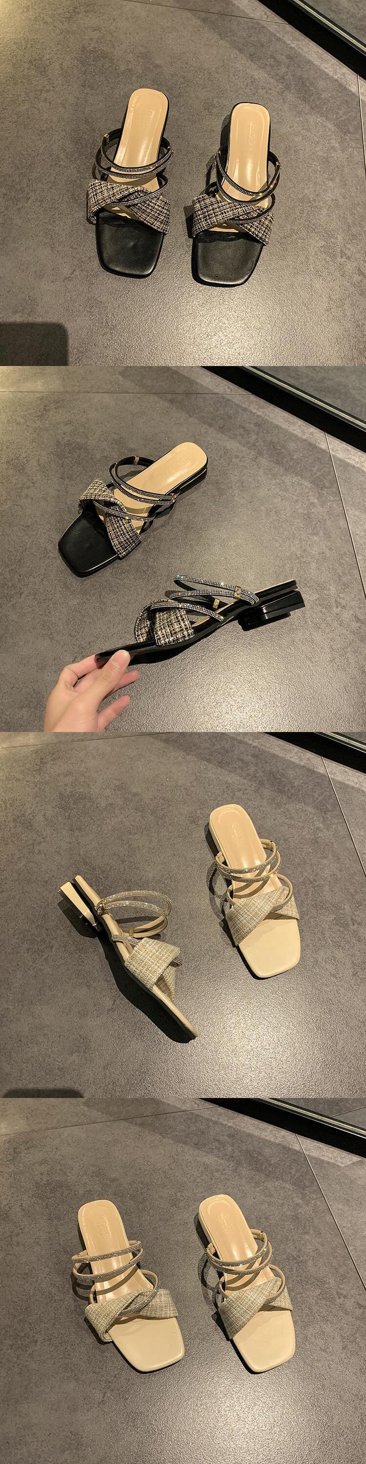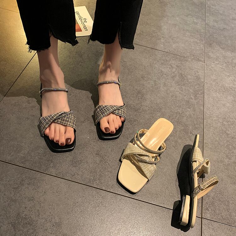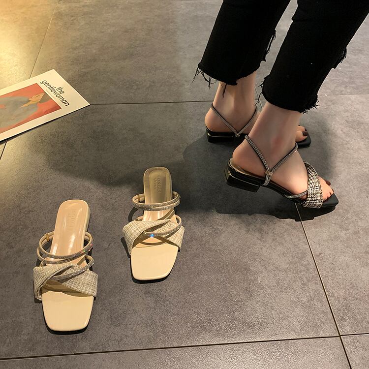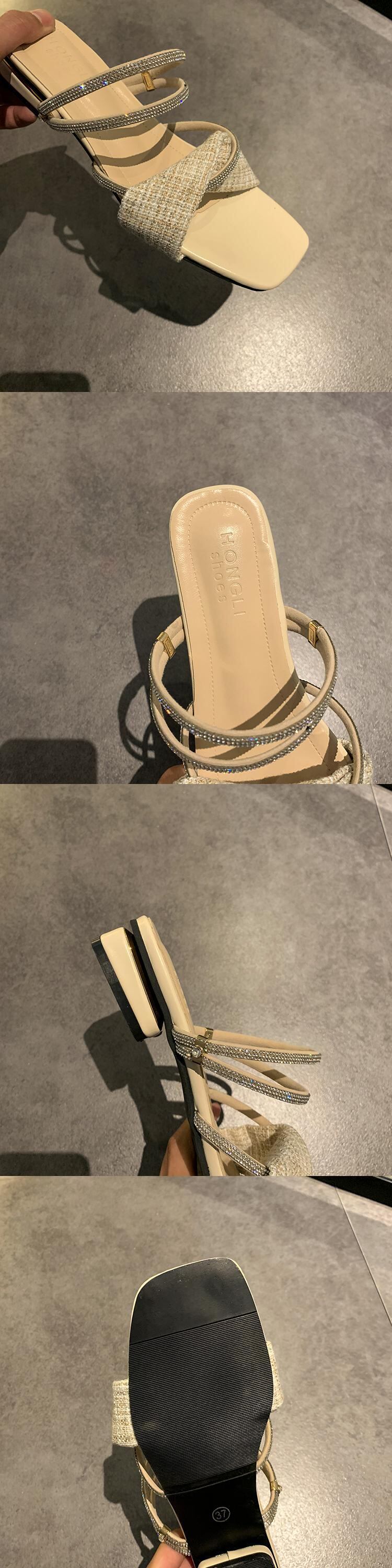 ミュールサマーラインストーンレッドサンダル 靴 シューズ 夏物 部族の婦人靴2938212274