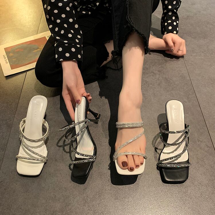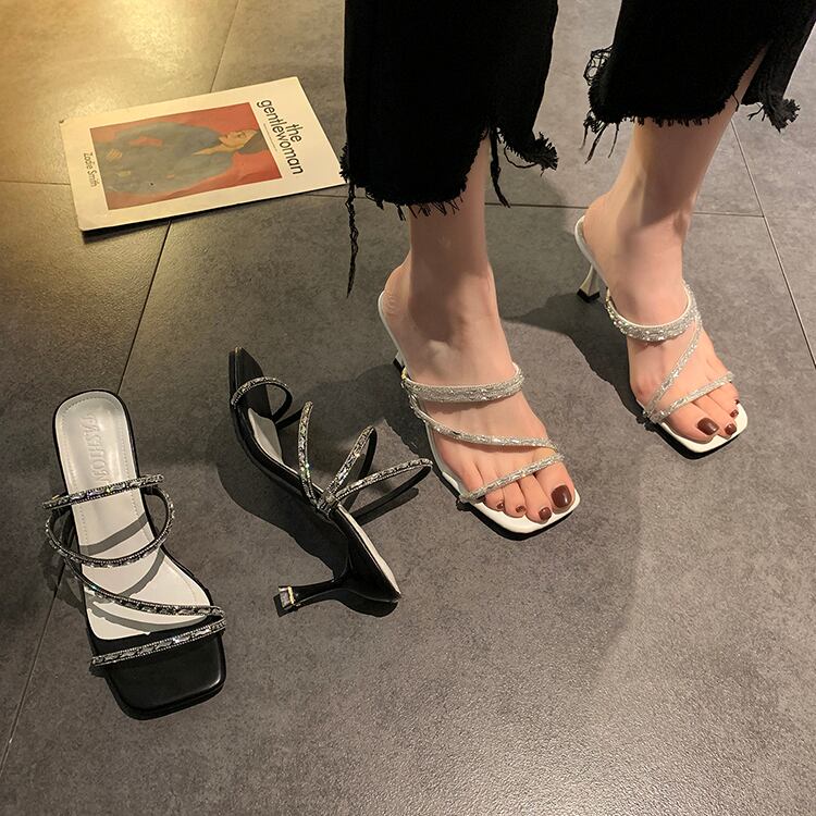 ミュールレッドハイヒールラインストーンサマー 靴 シューズ 夏物 部族の婦人靴76487234081