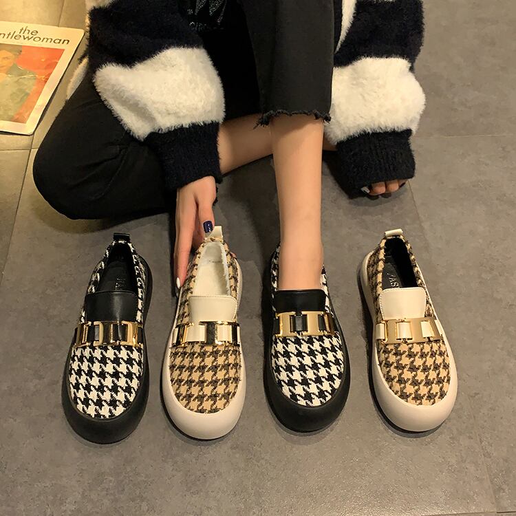 ウィンターレッド格子柄ベルベットカジュアル 靴 シューズ 冬物 部族の婦人靴36664526040