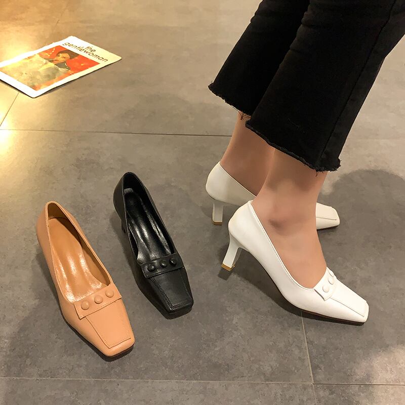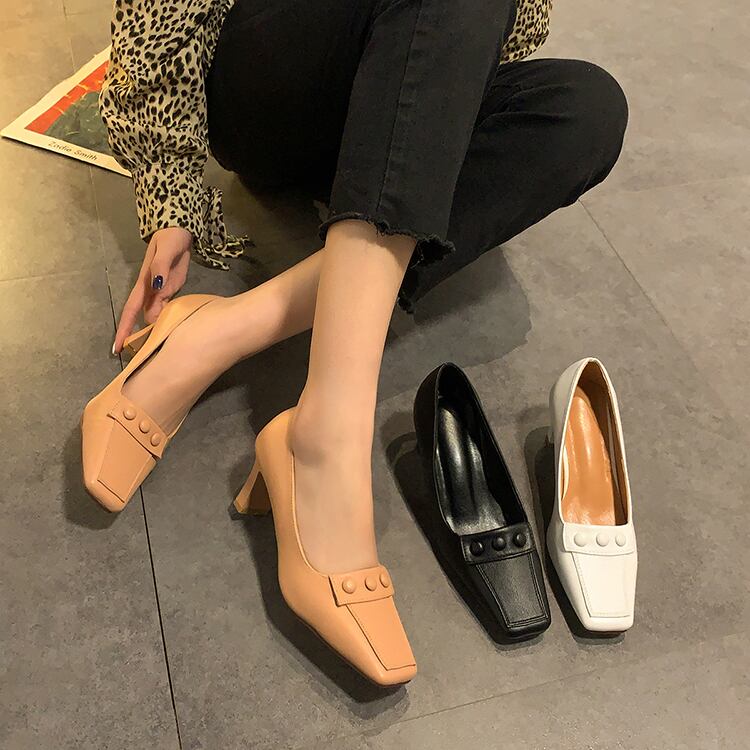 シングルスプリングレッドソリッド カラーヒール 靴 シューズ ハイヒール 春物 ソリッドカラー スクウェア 部族の婦人靴21731673413