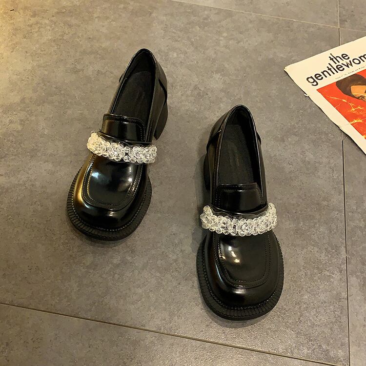 スプリングラインストーンレッドレザーブラックシングル 靴 シューズ 春物 部族の婦人靴61279119707