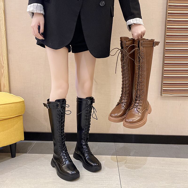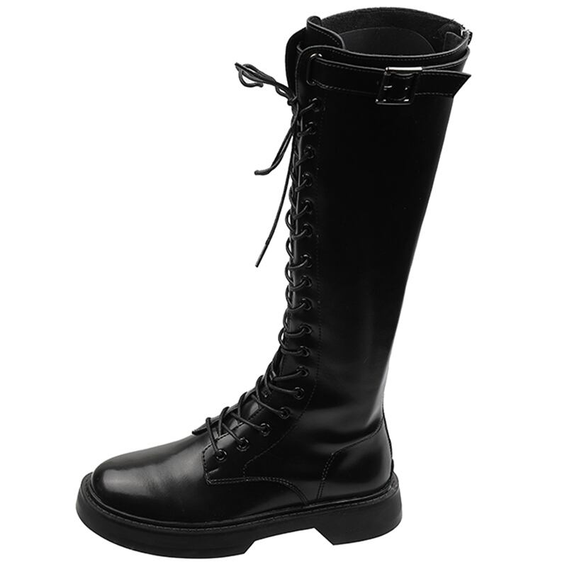 レディースカジュアルレッドブラックブーツ ロング レース 靴 シューズ レースアップ 部族の婦人靴7710156456