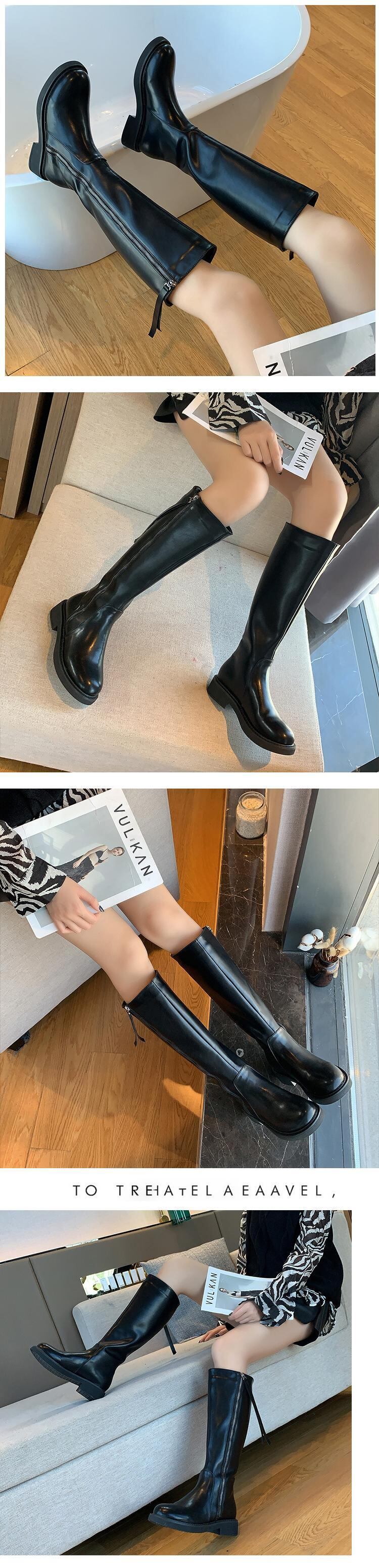 レディースロングブーツオータムウィンターレッドカジュアルサイドジッパー 靴 シューズ 秋物 冬物 ラウンドトー 部族の婦人靴96453906636
