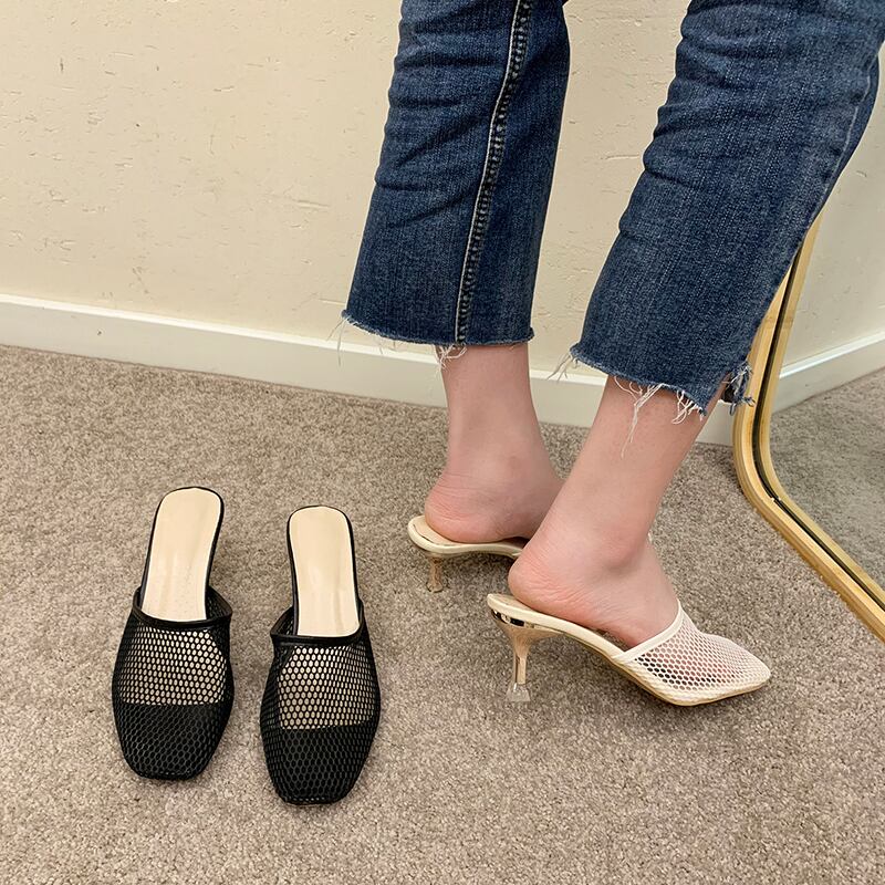 ミュールサマーカジュアルヒール ハイヒール 靴 シューズ 夏物 スクウェア 部族の婦人靴50215846467